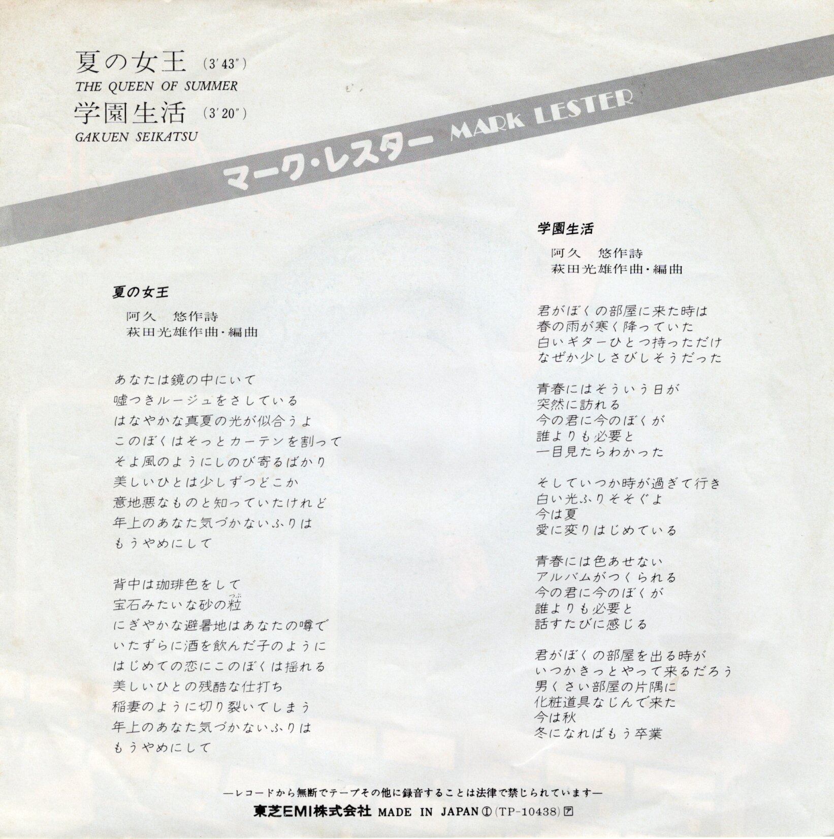 【7”】マ―ク・レスター 夏の女王 / 学園生活 Mark Lester – The Queen Of Summer / Gakuen Seikatsu