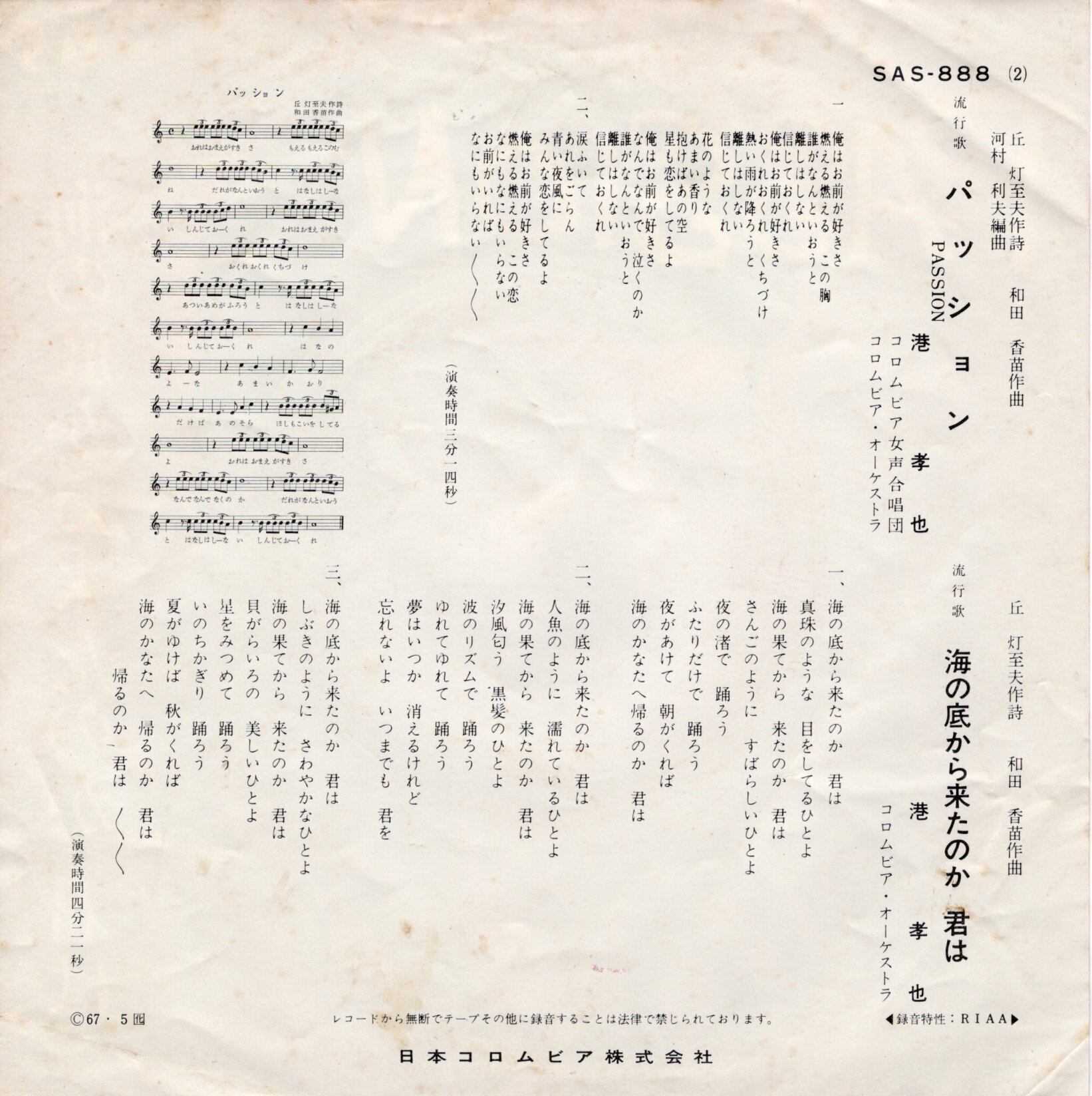 【7”】港 孝也 PASSION / 海の底から来たのか君は