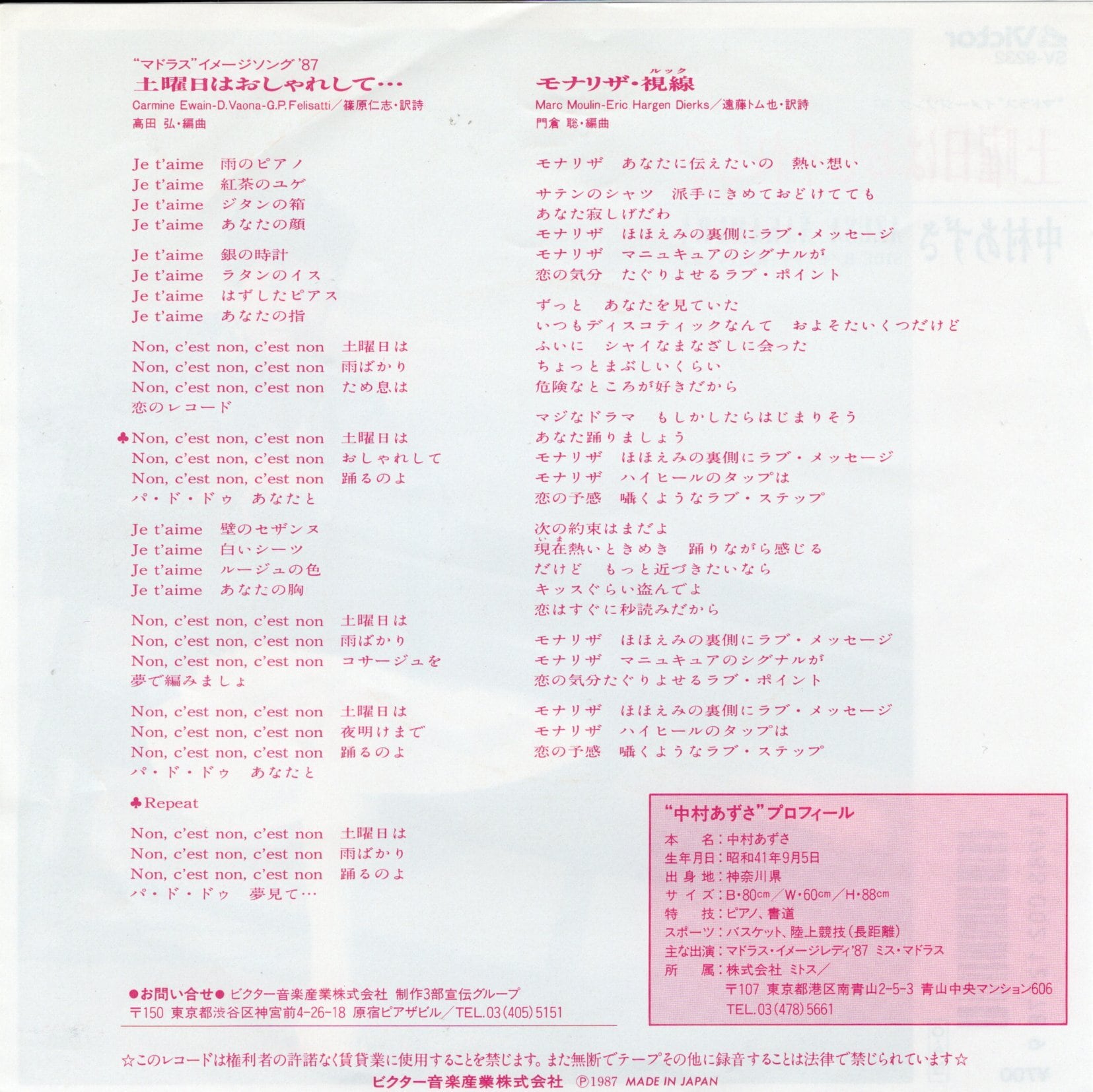【7”】中村あずさ 土曜日はおしゃれして / モナリザ・視線(ルック)