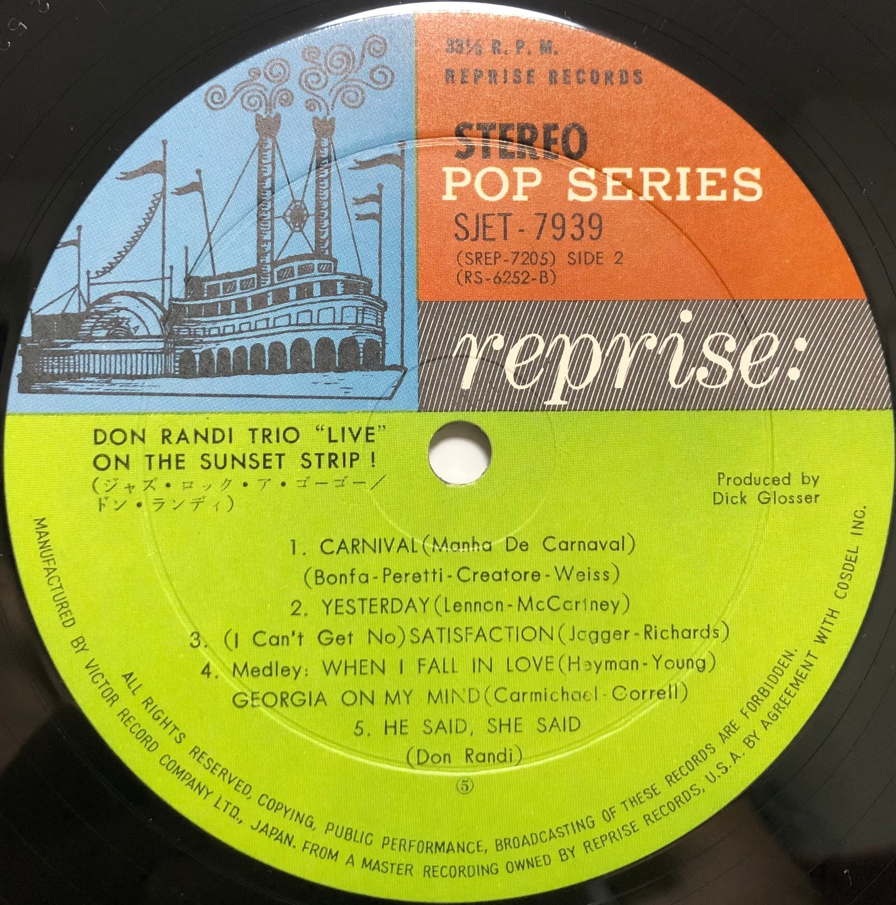 【LP】ドン・ランディ ジャズ・ロック・ア・ゴー・ゴー Don Randi Trio – "Live" On The Sunset Strip!
