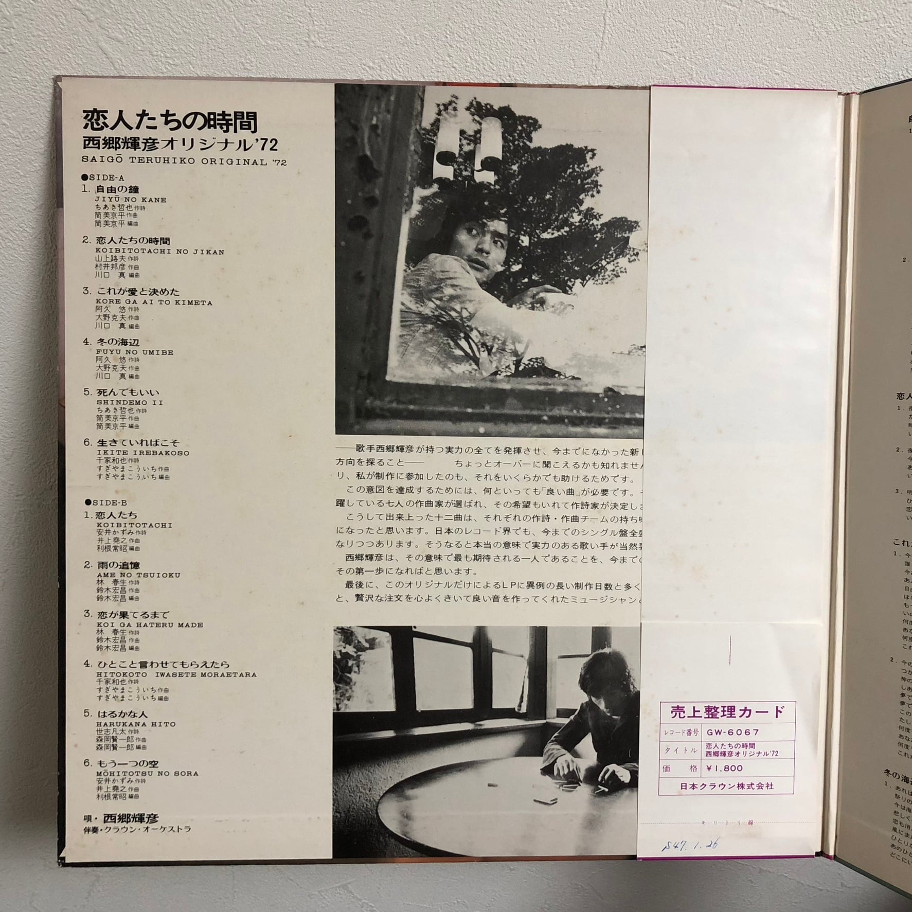 【LP】西郷輝彦 恋人たちの時間 ―西郷輝彦オリジナル’72―