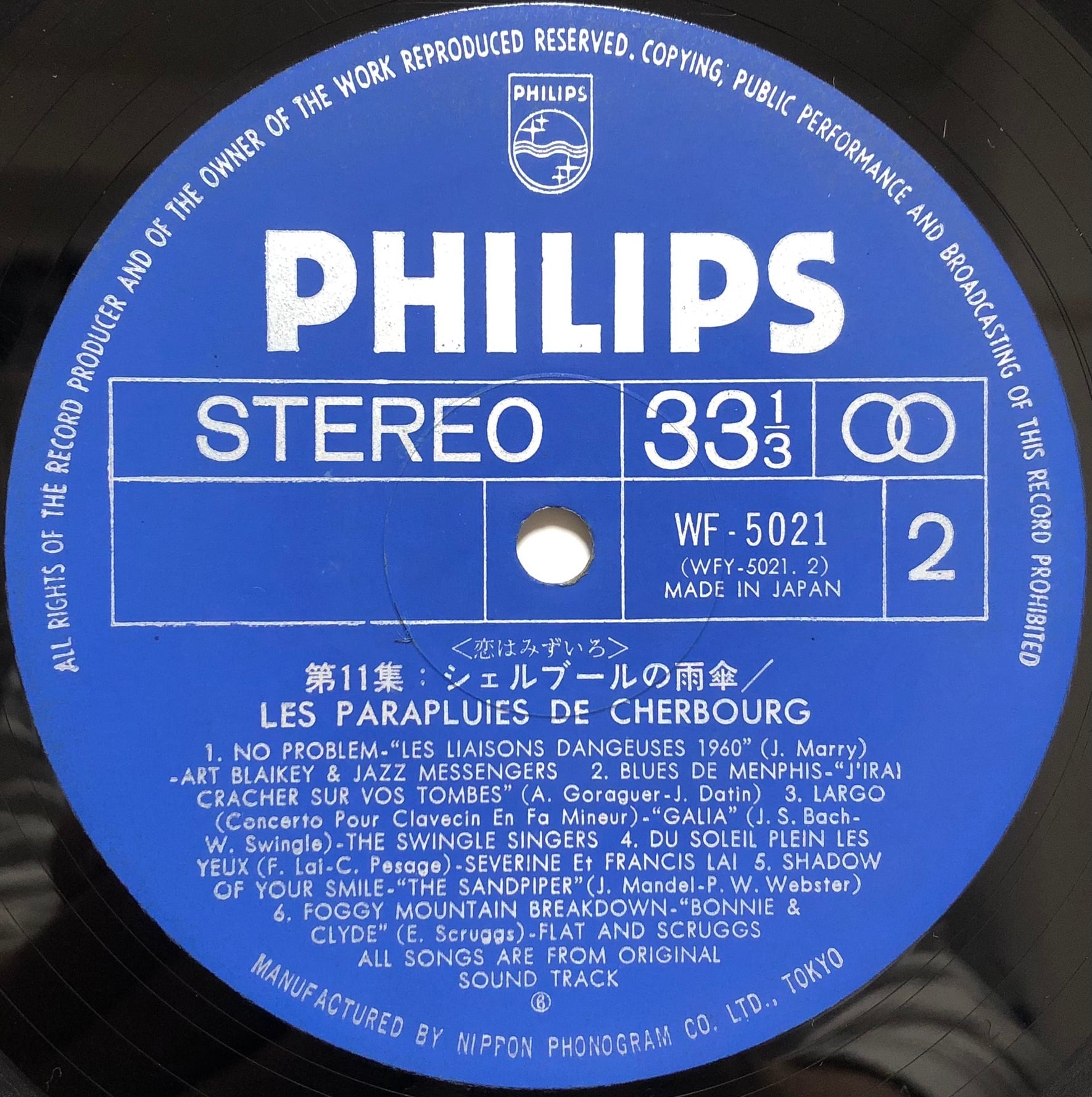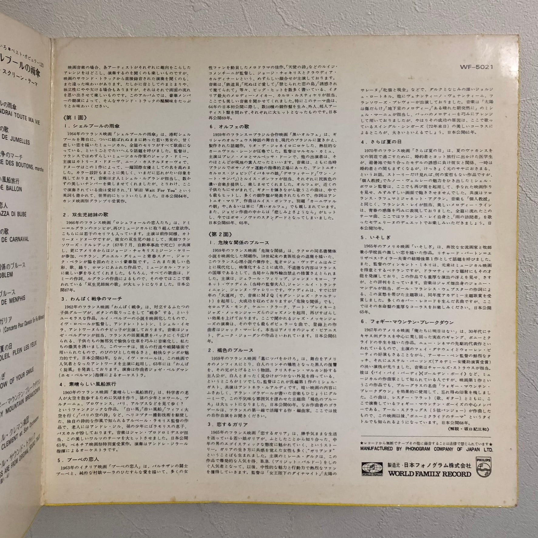 A1以外すべてオリジナル・サウンド・トラックを使用(A1はミシェル・クレマン楽団)。『ロシュフォールの恋人たち』よりA2『双生児姉妹の歌』を収録。