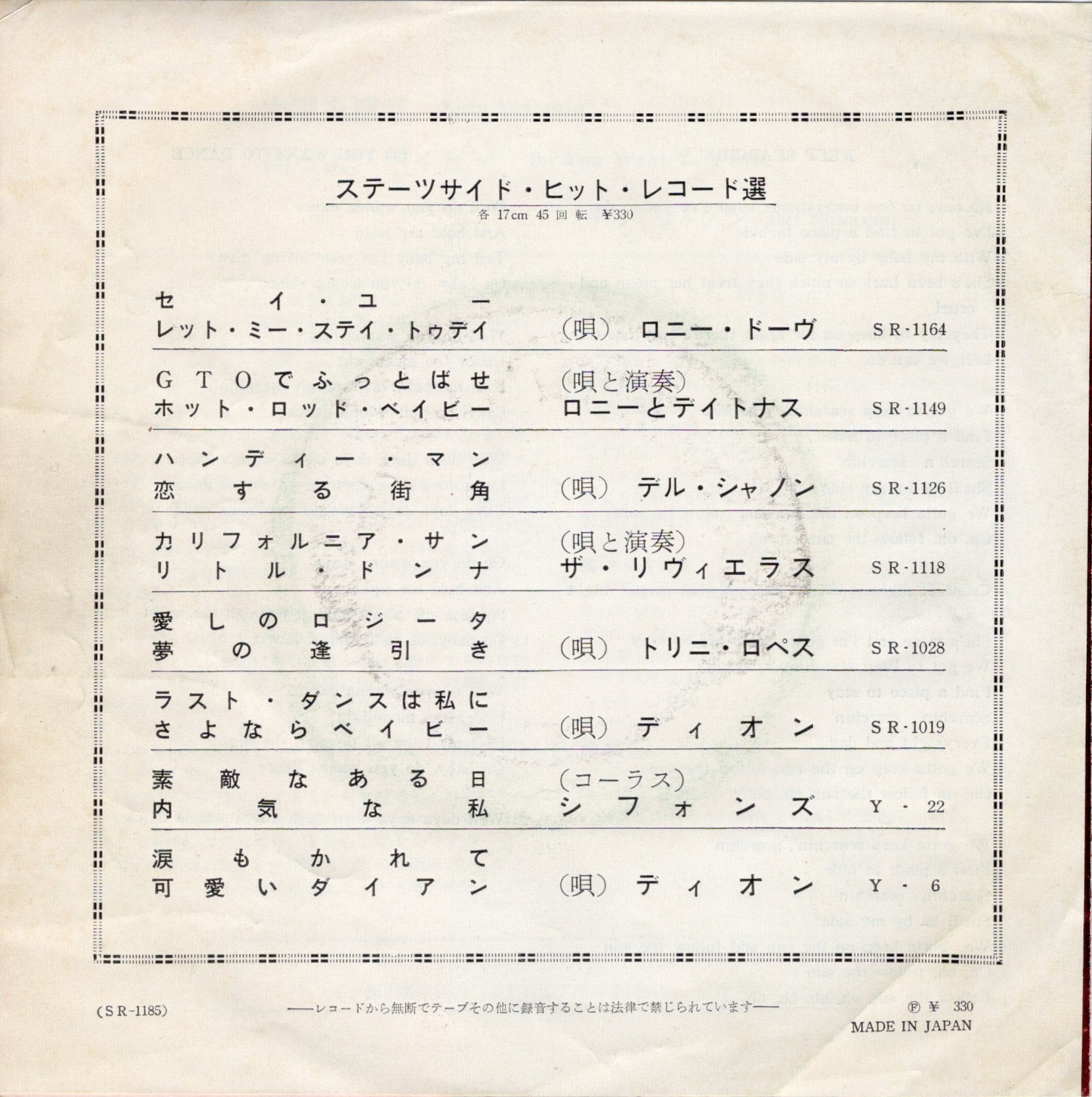 Stateside Records/東芝音楽工業 SR-1185