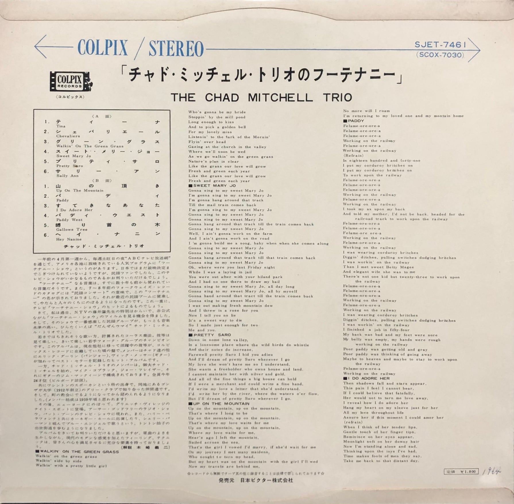 ’64年発売国内盤。コルピックス時代のチャド・ミッチェル・トリオの一枚。のちにThe Byrdsで活躍するジム(ロジャー)・マッギン在籍。奇跡のミント・コンディションで入荷。