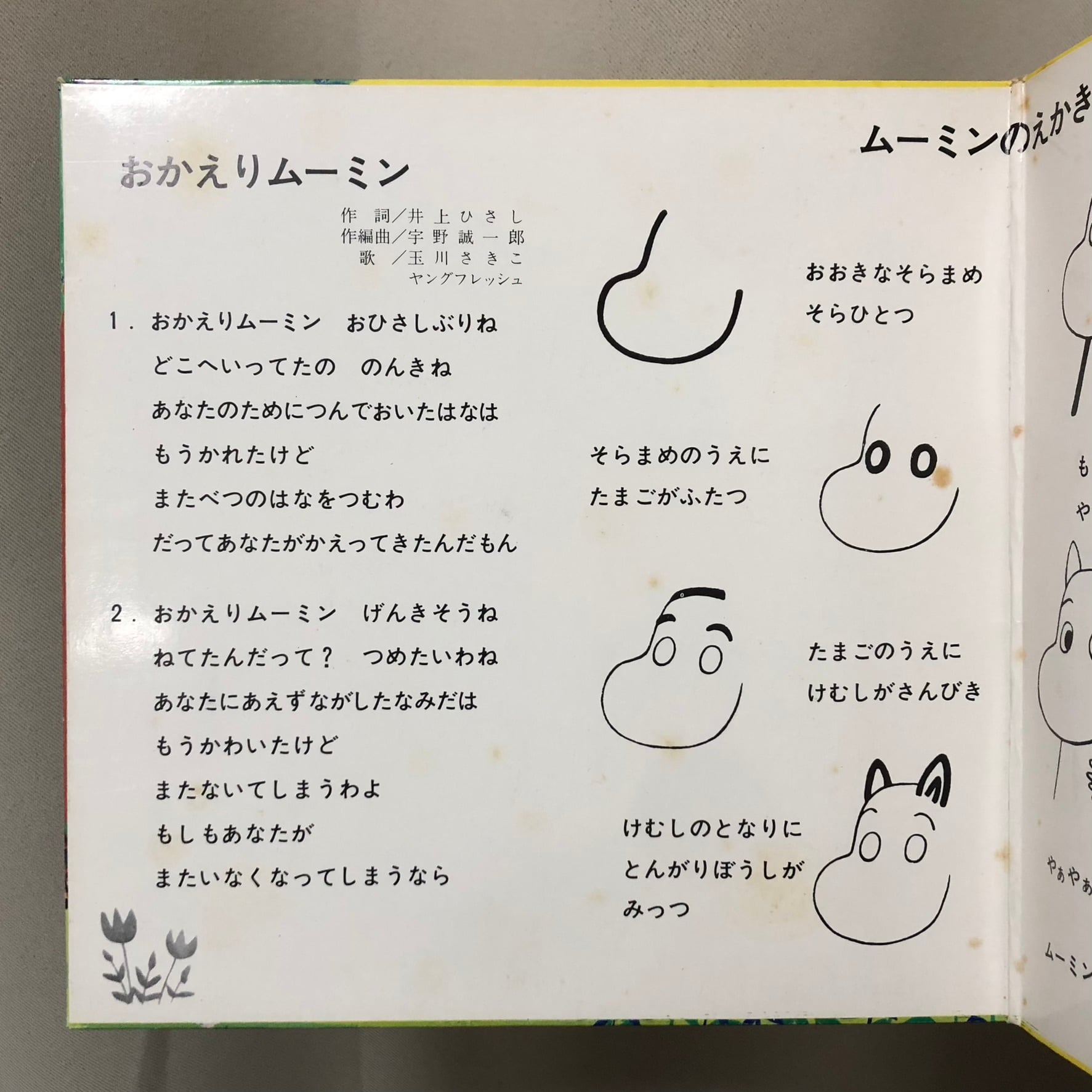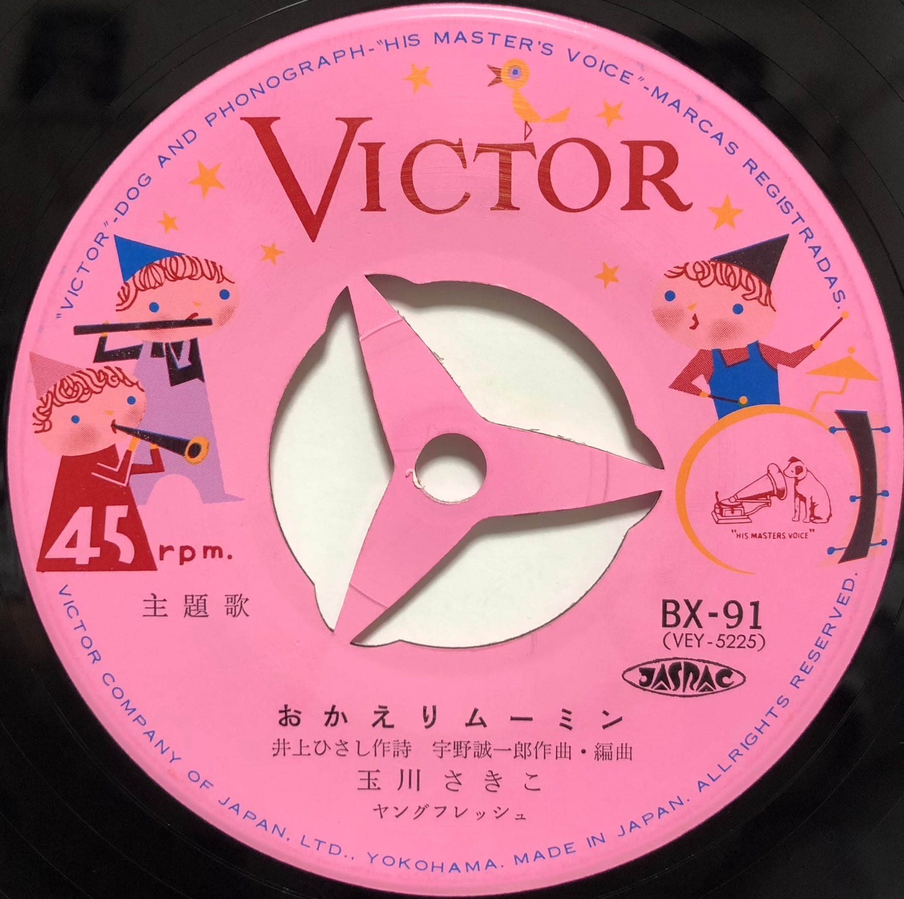 声優、女優であり池田秀一氏(シャア役声優)の奥様でもある玉川さきこ(砂記子)さん歌うムーミン主題歌。両面共に井上ひさし作詞/宇野誠一郎作編曲。’72年発売。