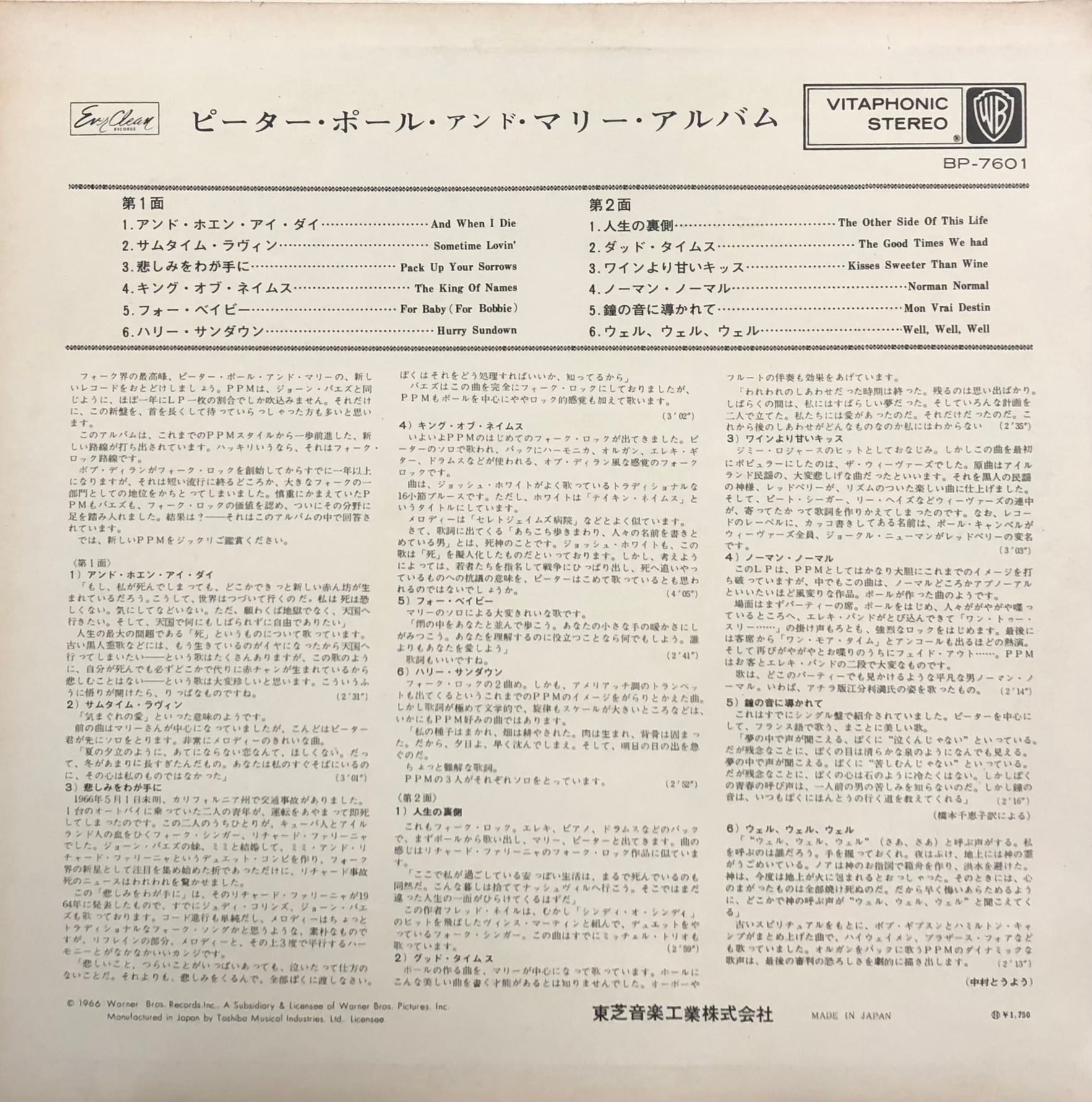 ’66年リリース。PPM通算7枚目のアルバムにしてフォーク・ロックに挑んだアルバム。
