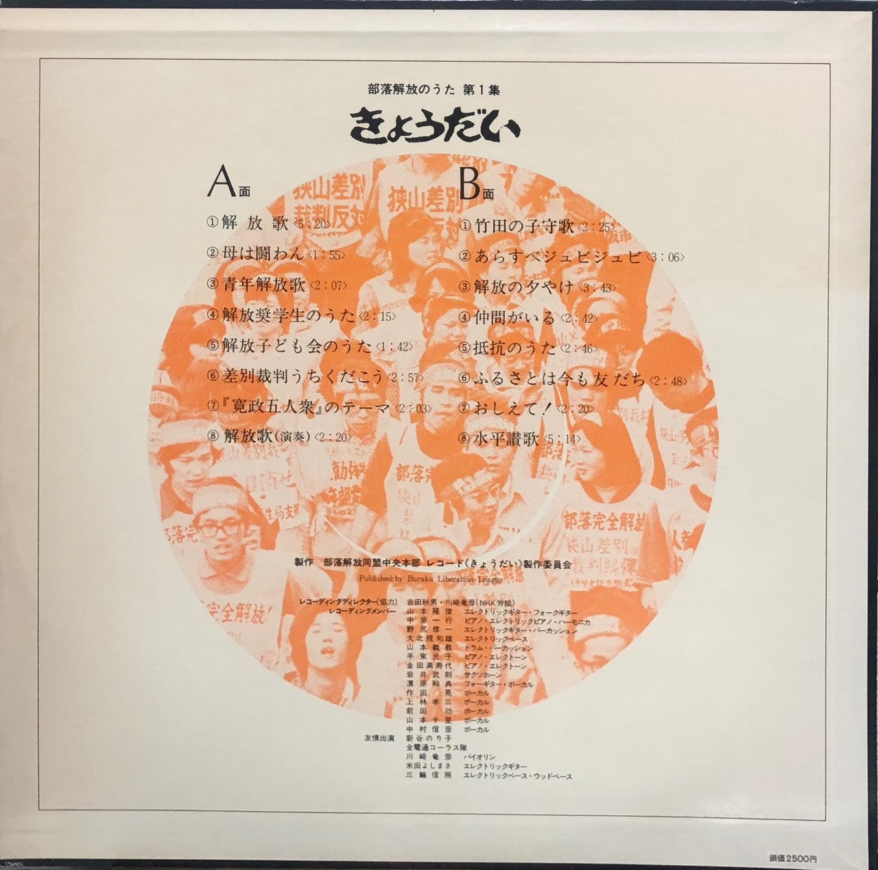 ’77年リリース。部落解放運動のメッセージを込めた楽曲集。当時としては珍しい自主制作盤であり、その音楽性から「和モノ」「アシッドフォーク」「ニューロック」のファンそして「レアグルーヴ」愛好家の間で希少価値が高まっている一枚。単なるプロパガンダではなく当時の音楽シーンと社会運動が交差した文化的に重要な作品。友情出演として新谷のり子(B1、B2)等が参加。フォーク・ロックなB2、ブルージーなB3、微量のウエスト・コーストの風を含んだ疾走ニューミュージックB6等聴きどころ満載。白眉はアルバムのラストをアジテーションで飾る激烈メッセージ・アシッド・ロックB8。