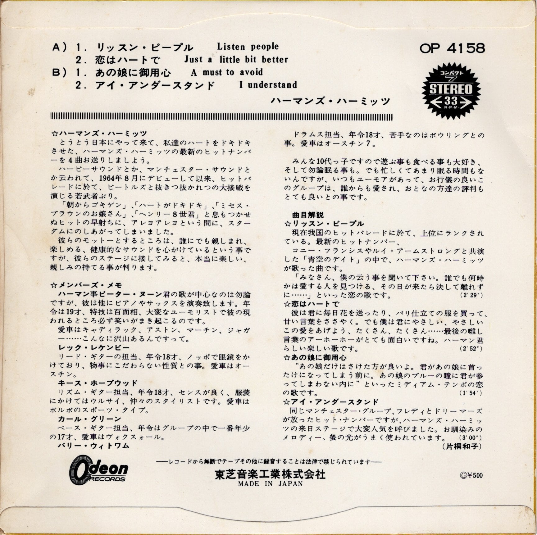 ハーマンズ・ハーミッツ厳選4曲入りコンパクト盤。’66年発売。