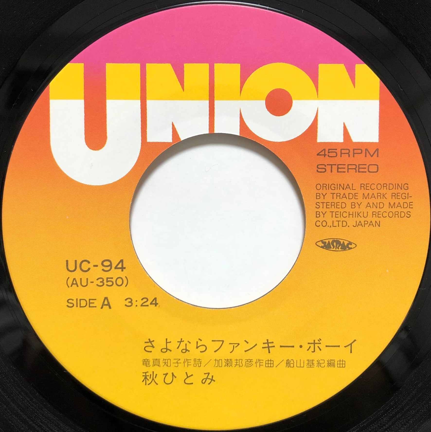 ’79年リリース。大阪市住吉区出身アイドル秋ひとみの5thシングル。両面共に竜真知子作詞/加瀬邦彦作曲/船山基樹編曲。和ディスコ。