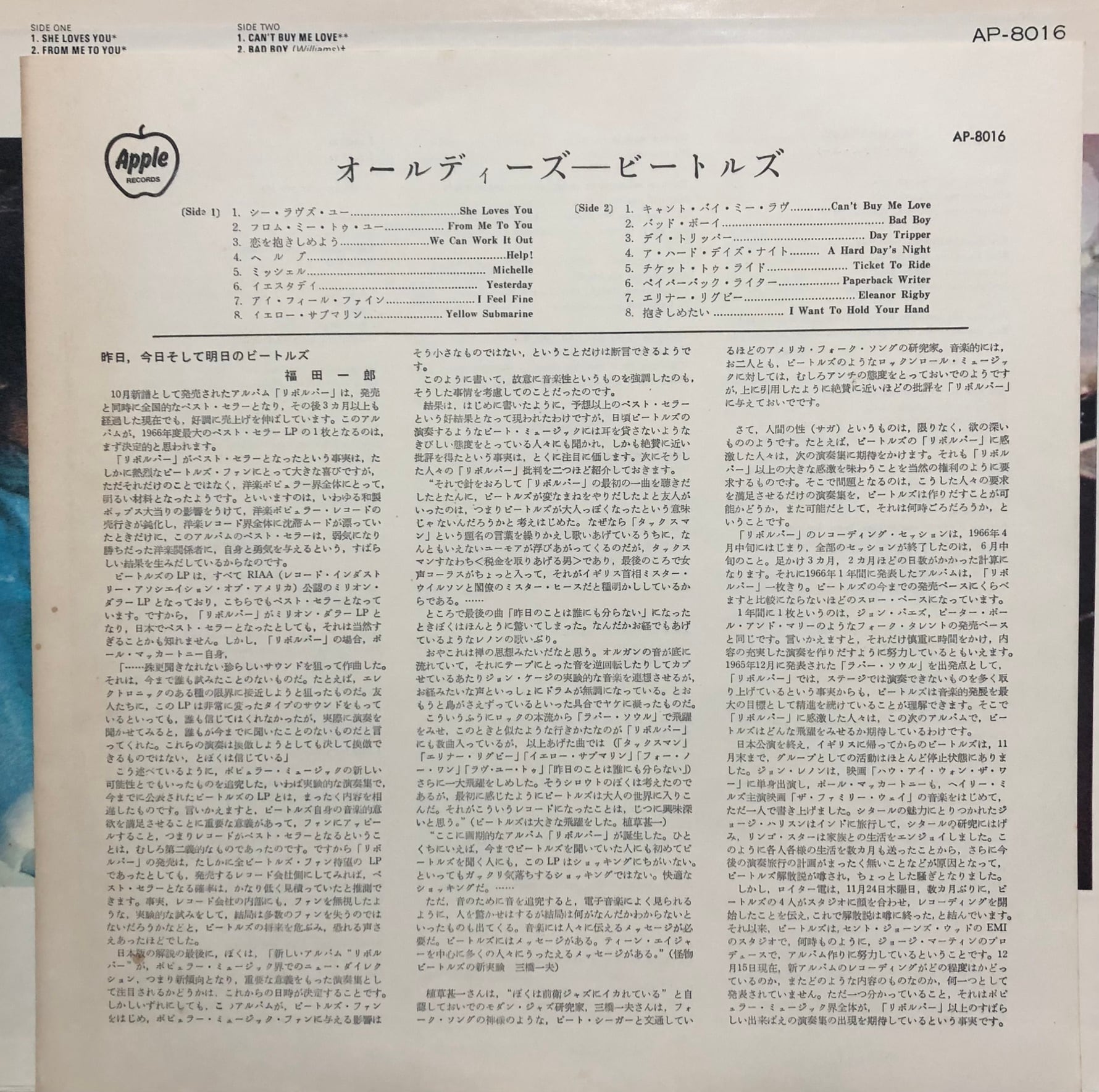 '66年に発表されたビートルズ活動期唯一のコンピレーション・アルバム(ベスト・アルバム)。リイシュー盤。