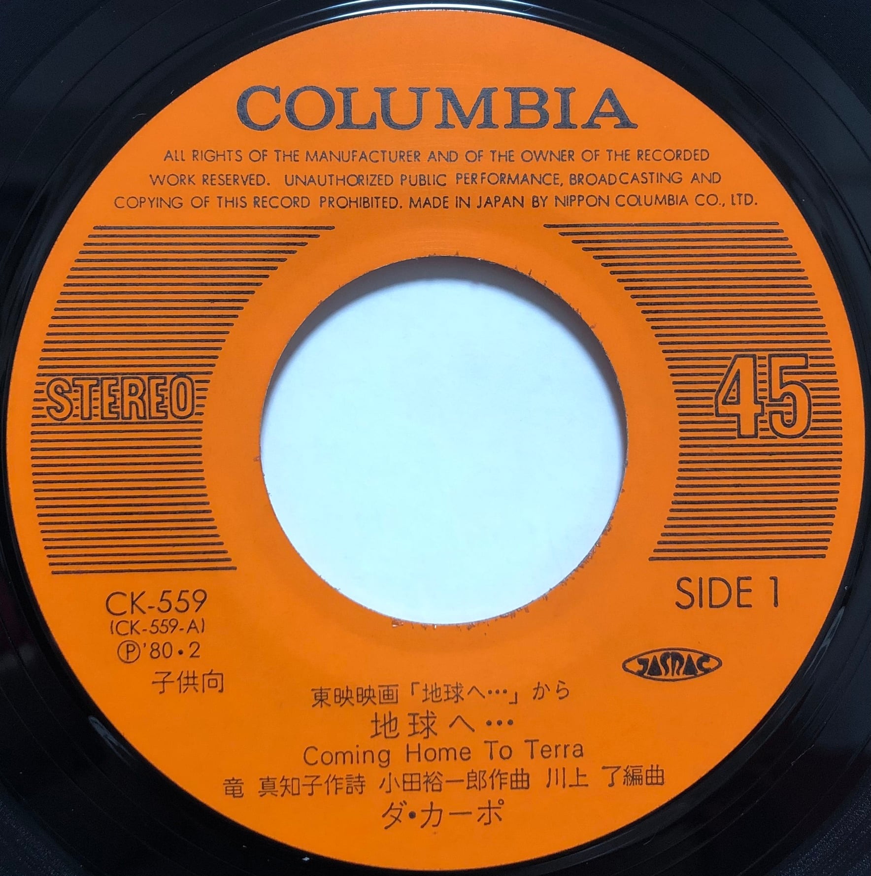 '80年リリース。竹宮恵子原作・東映映画『地球へ…』主題歌。B面はミッキー吉野作曲の壮大なバラード。