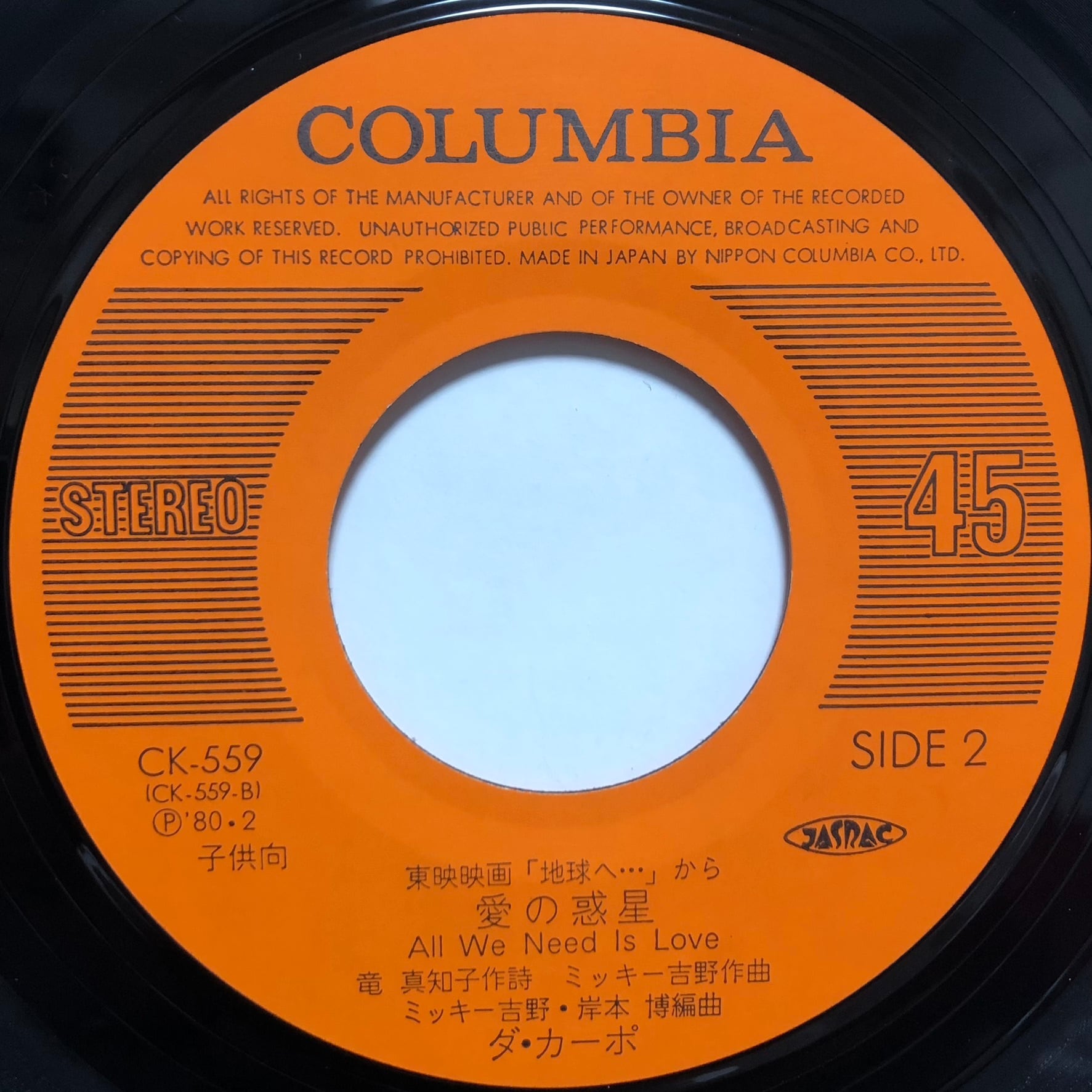 【7”】ダ・カーポ 地球(テラ)へ / 愛の惑星(プラネット) Da Capo - Coming Home To Terra / All We Need Is Love | VINYL SHOP shiosairec
