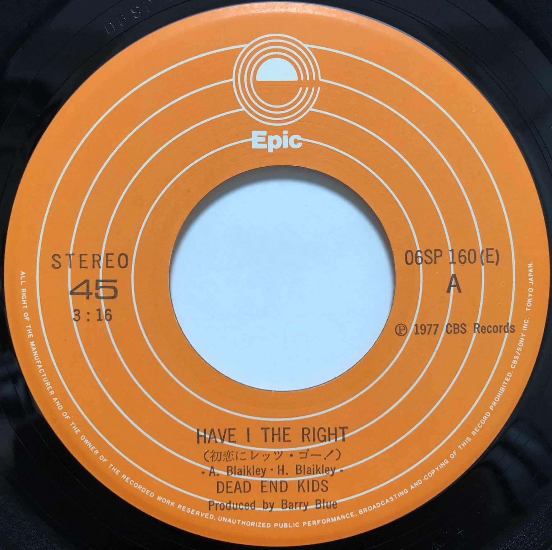 【7”】デッド・エンド・キッズ 初恋にレッツ・ゴー / あの娘にアタック Dead End Kids – Have I The Right / Lady (Put The Light On Me) | VINYL SHOP shiosairec