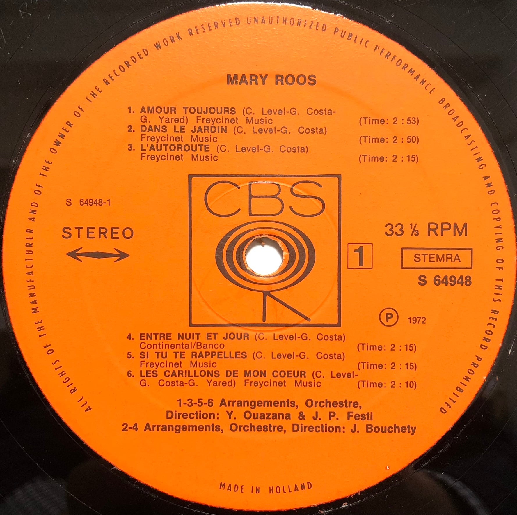 '72年リリース。ドイツ人歌手兼女優メアリー・ルースによるアルバム。2000年に本邦リリースされた橋本徹監修V.A.「カフェ・アプレミディ/ローズ」にも収録されたA1.等メロウなソフトロックが詰まった一枚。