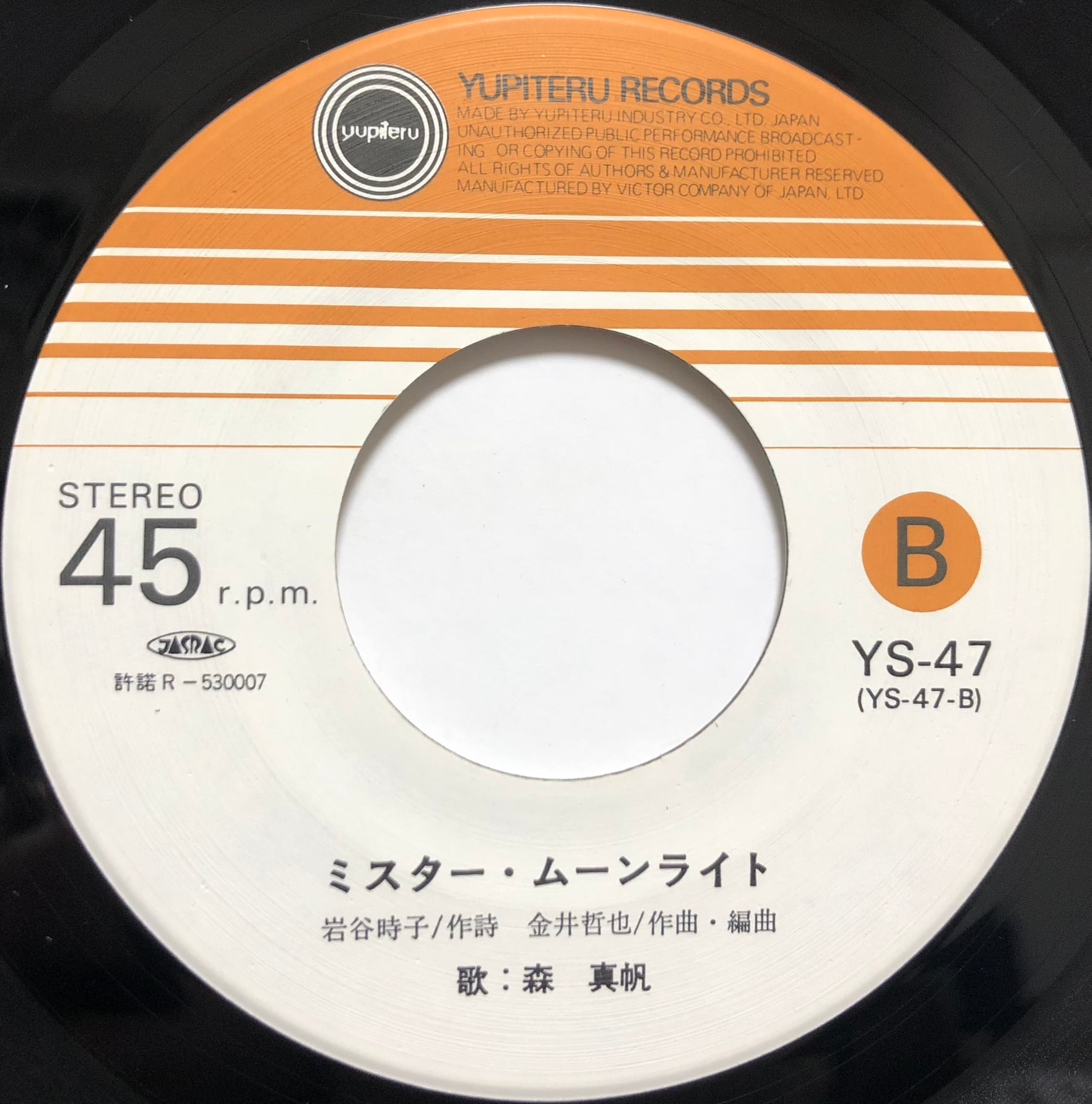 '80年リリース。現在は歌手としてだけでなく浜崎あゆみをはじめとした様々なアーティストのボイス・トレーナーやサウンド・プロデュース等を務める実力派シンガー森真帆のデビュー・シングル。林哲司作曲。リズム・アレンジとギターで永井充男、コーラス及びコーラス・アレンジで山川恵津子、ベースに鳴瀬喜博(A面)、キーボードで清水信之ら錚々たるメンツが参加。好きなアーティストに「キャロル・ベイヤー・セイガー」を挙げているのも納得のサウンド。妖艶な美しさが所以で回収された初版ジャケットでどうぞ!