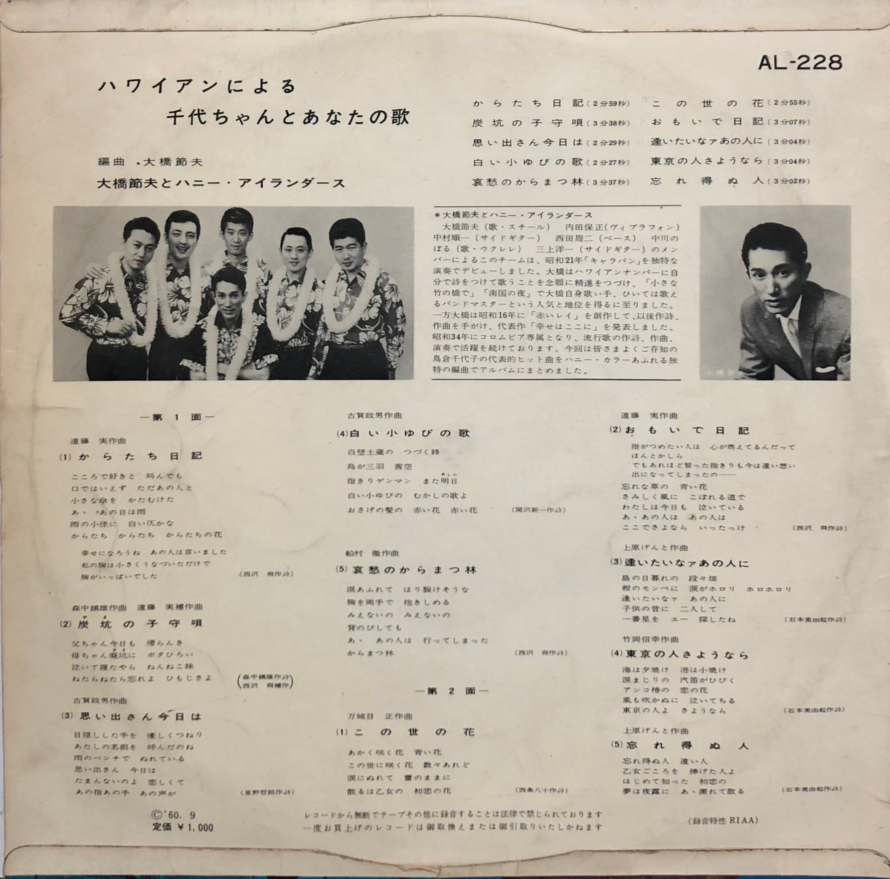 【10”】大橋節夫とハニー・アイランダース ハワイアンによる千代ちゃんとあなたの歌 Setsuo Ohashi And His Honey Islanders - Hawaian niyoru "Chiyochan" to Anata no Uta | VINYL SHOP shiosairec