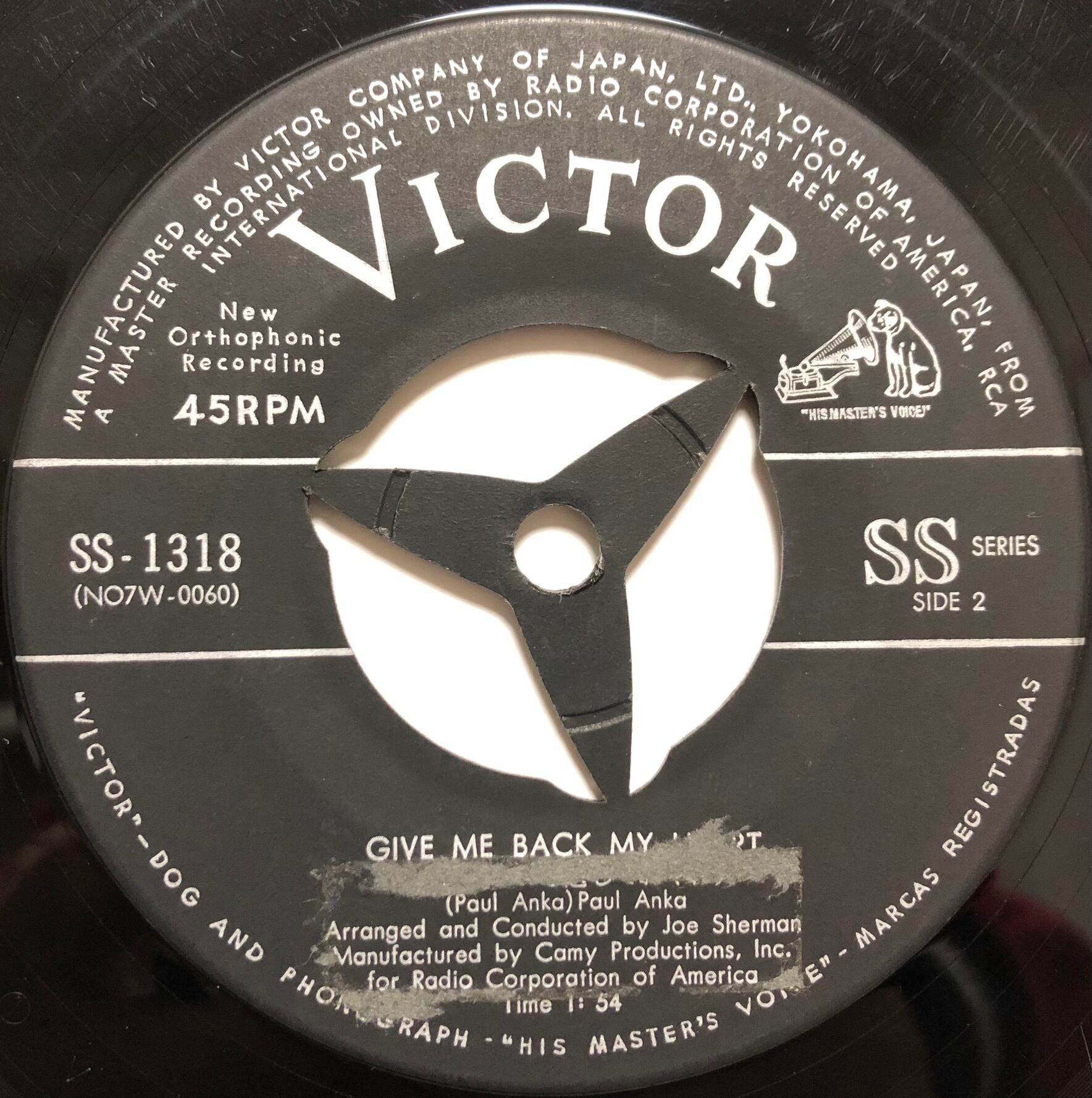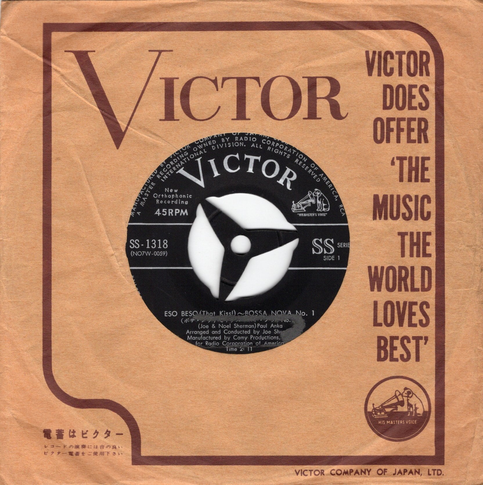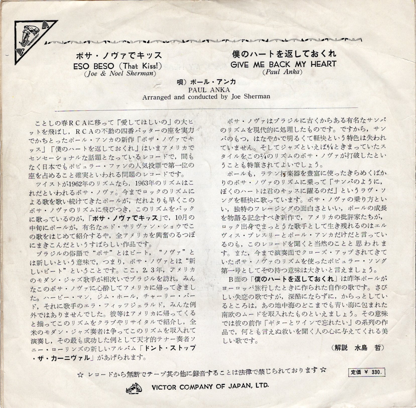 【7”】ポール・アンカ ボサ・ノヴァでキッス~ボサ・ノヴァNo.1 / 僕のハートを返しておくれ Paul Anka – Eso Beso (That Kiss!) / Give Me Back My Heart | VINYL SHOP shiosairec