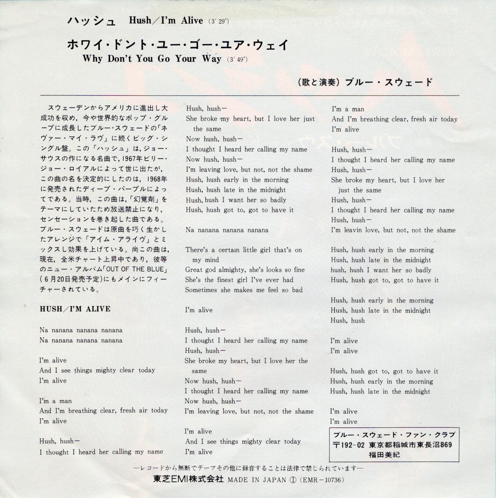 EMI/東芝EMI EMR-10736