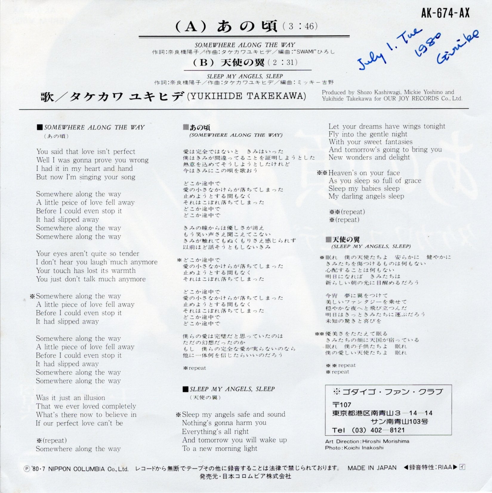 ’80年リリース。アルバム『LYENA』からのカット。ゴダイゴのライヴでフィナーレを飾るナンバー。B面「天使の翼」はフマキラー「ベープマット」CMソング。
