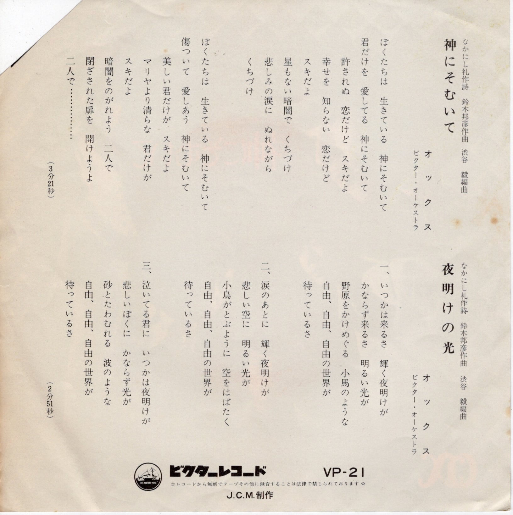 「神にそむいて」外部参考音源 https://youtu.be/PTvNmghpaTE?list=RDPTvNmghpaTE