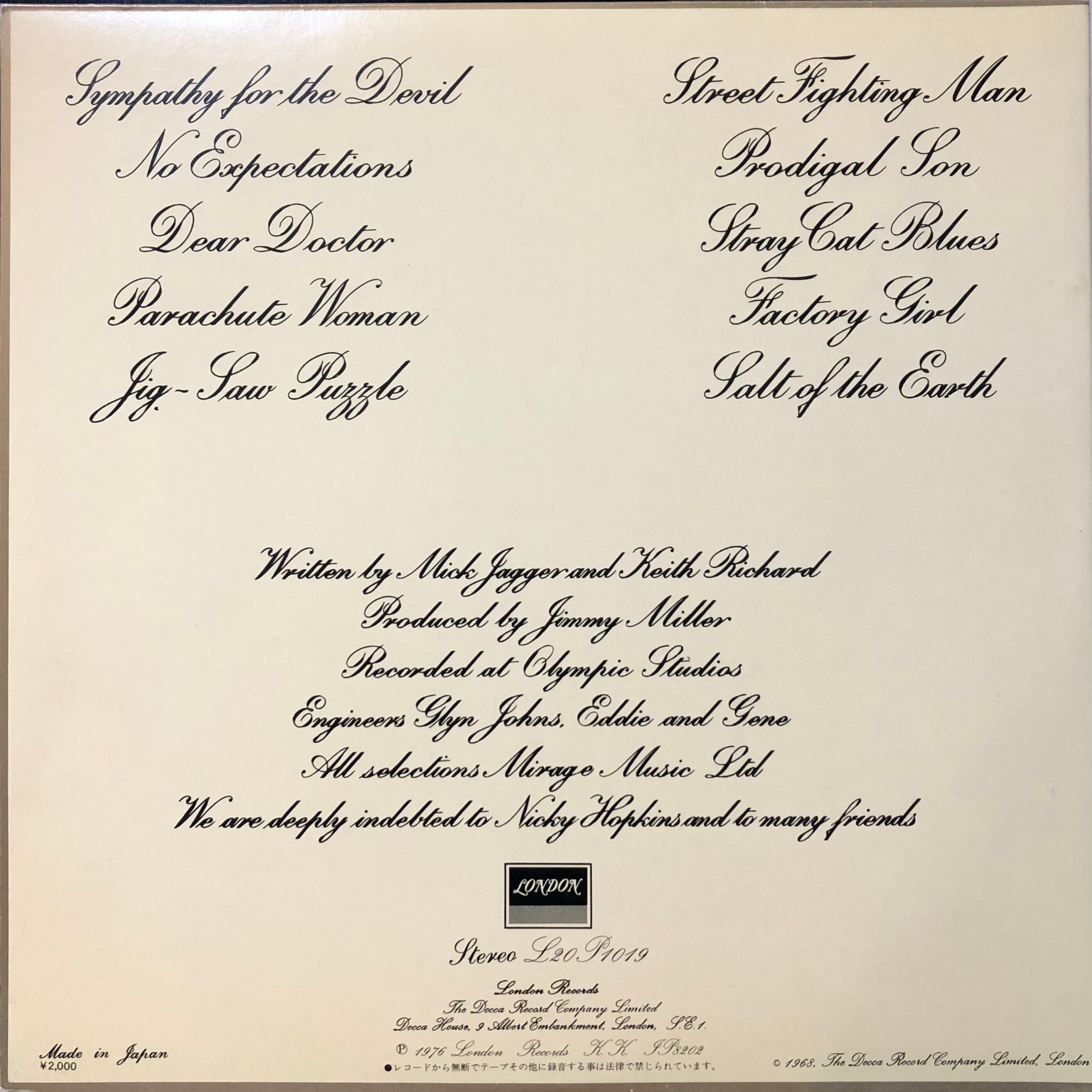 前作サタニック・マジェスティーズで当世風サイケデリック・ロックに片足を突っ込んだローリング・ストーンズが原点回帰。古くからあるブルースやカントリーフォークといったスタイルを基調にしたアコースティック作品と共に「悪魔を憐れむ歌」や「ストリート・ファイティング・マン」といったバンドの新たな方向性を指し示すオリジナル作品群を展開。ファンや評論家に大いに評価され、全英3位、全米5位を記録。バンドの創作能力の高さを誇示してみせた金字塔の如きアルバム。プロデューサーのジミー・ミラーにより指し示されたこれらブルース~スワンプ、サザンロック路線はそのまま後の「レット・イット・ブリード」「スティッキー・フィンガーズ」「メイン・ストリートのならず者」へと続きストーンズの黄金時代を築くのでありました。