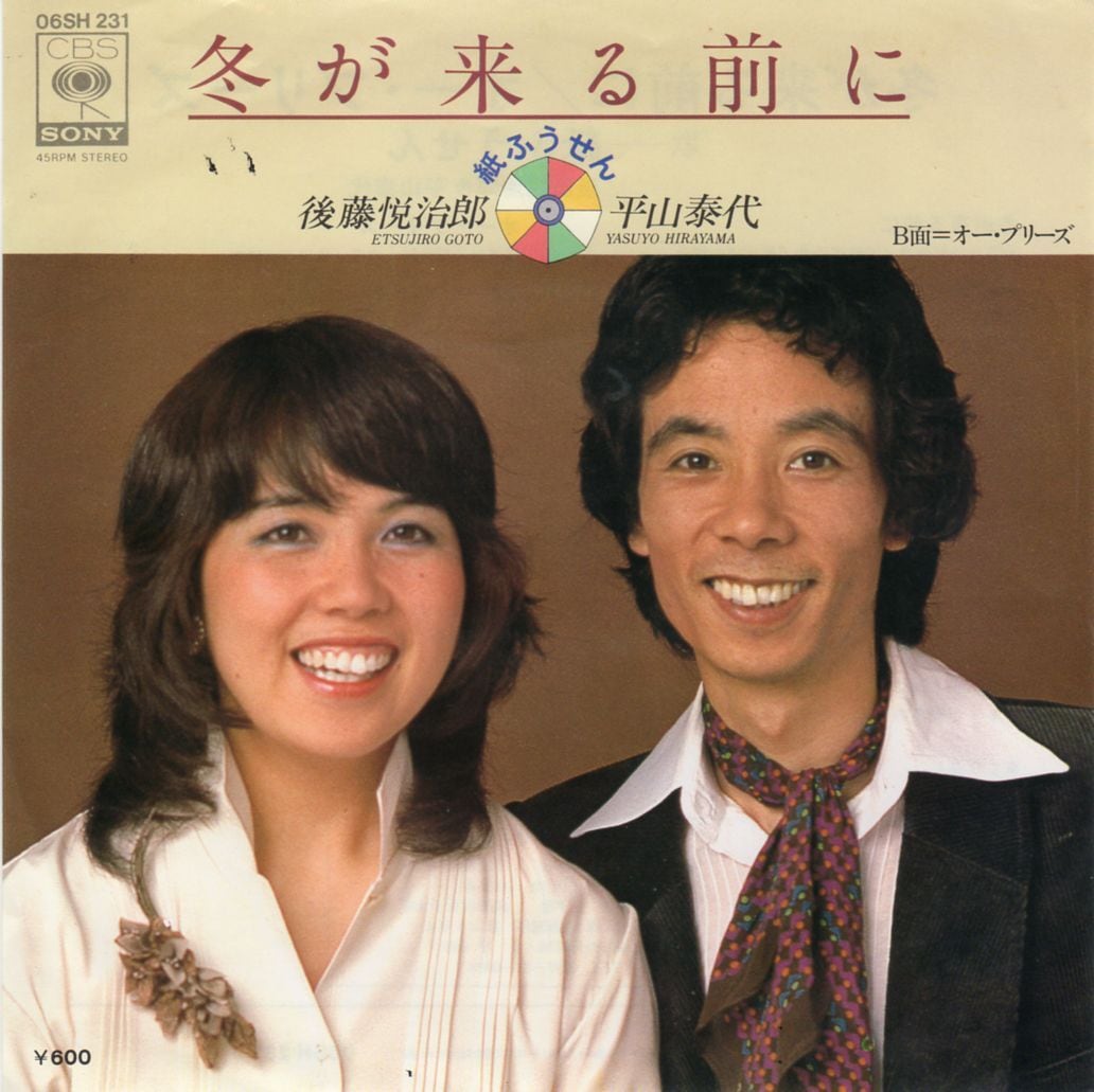1977年8月発売。フォーク~ソフト・ロック・グループ"赤い鳥"のメンバー後藤悦治郎氏と同じくメンバー平山泰代さんが結婚~赤い鳥解散後に結成したデュオ"紙ふうせん"の8thシングル。A面「冬が来る前に」は紙ふうせん最大のヒット曲であり後年ハロー・プロジェクトや中森明菜にもカバーされたり学校の音楽教科書にも掲載される等フォーク~ニュー・ミュージックの垣根を超えたスタンダード・ナンバーとなりつつある一曲。