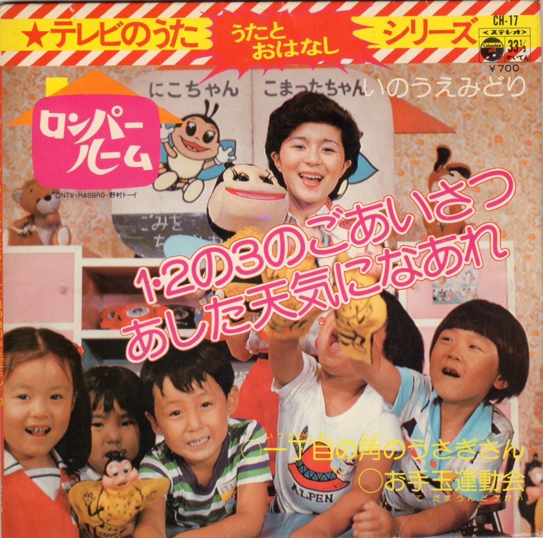 【7″/EP】いのうえみどり テレビのうたシリーズ コンパクト盤 ロンパールーム 「1・2の3のごあいさつ」「あした天気になあれ」/「一丁目の角のうさぎさん」「お手玉運動会」