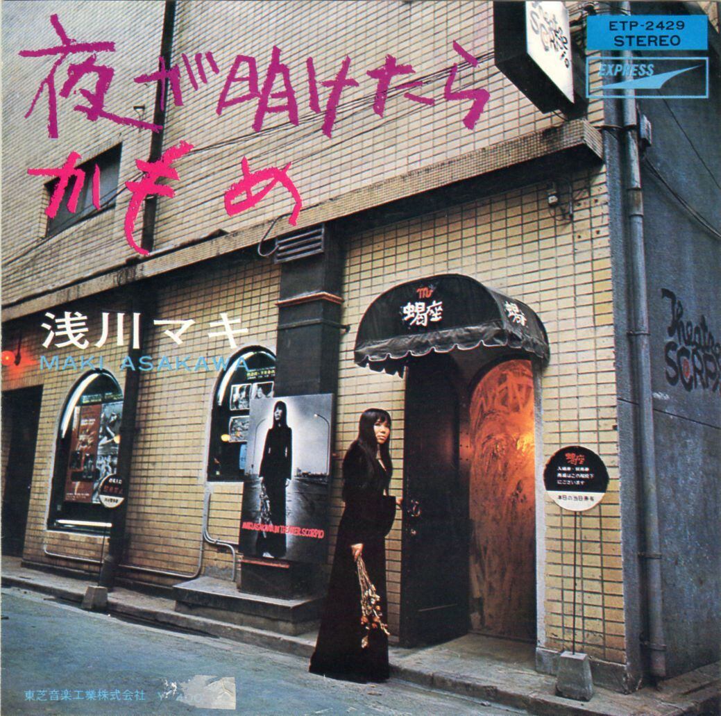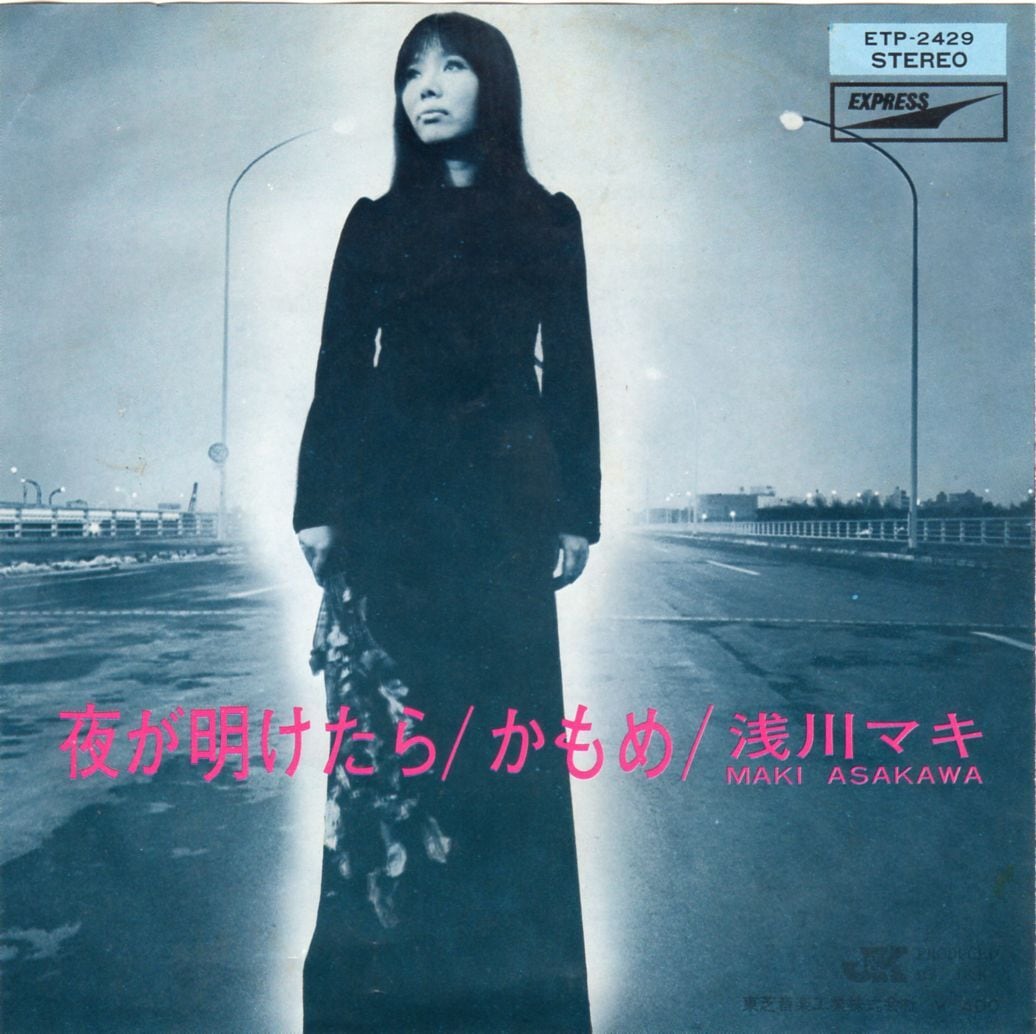 徹底した美学を終世持ち続けた孤高のシンガー浅川マキ。1969年7月東芝へ移籍後にリリースされたシングルの’71年Repress盤。A面「夜があけたら」は浅川マキ作詩・作曲で宮間利之とニューハード出身のジャズ・ギタリスト山木幸三郎による編曲。新宿のアンダーグラウンド・シアター蠍座での実況録音。ジャジィな演奏は山木幸三郎とオールスターズによるものでニーナ・シモンを彷彿とさせる浅川マキの歌唱(&世界観)とマッチしててとてもクール。B面「かもめ」は劇団「天井桟敷」主宰の劇作家寺山修司作詩と山木幸三郎作編曲によるものでスタジオ録音作品。港町のあばずれ女に恋をしてしまった男の顛末が浅川マキの淡白な歌唱によりストーリー・テリングされるアンダーグラウンド・シャンソン的作品。どちらも名曲。音溝に刻まれたあの時代の新宿の闇を感じとってください。