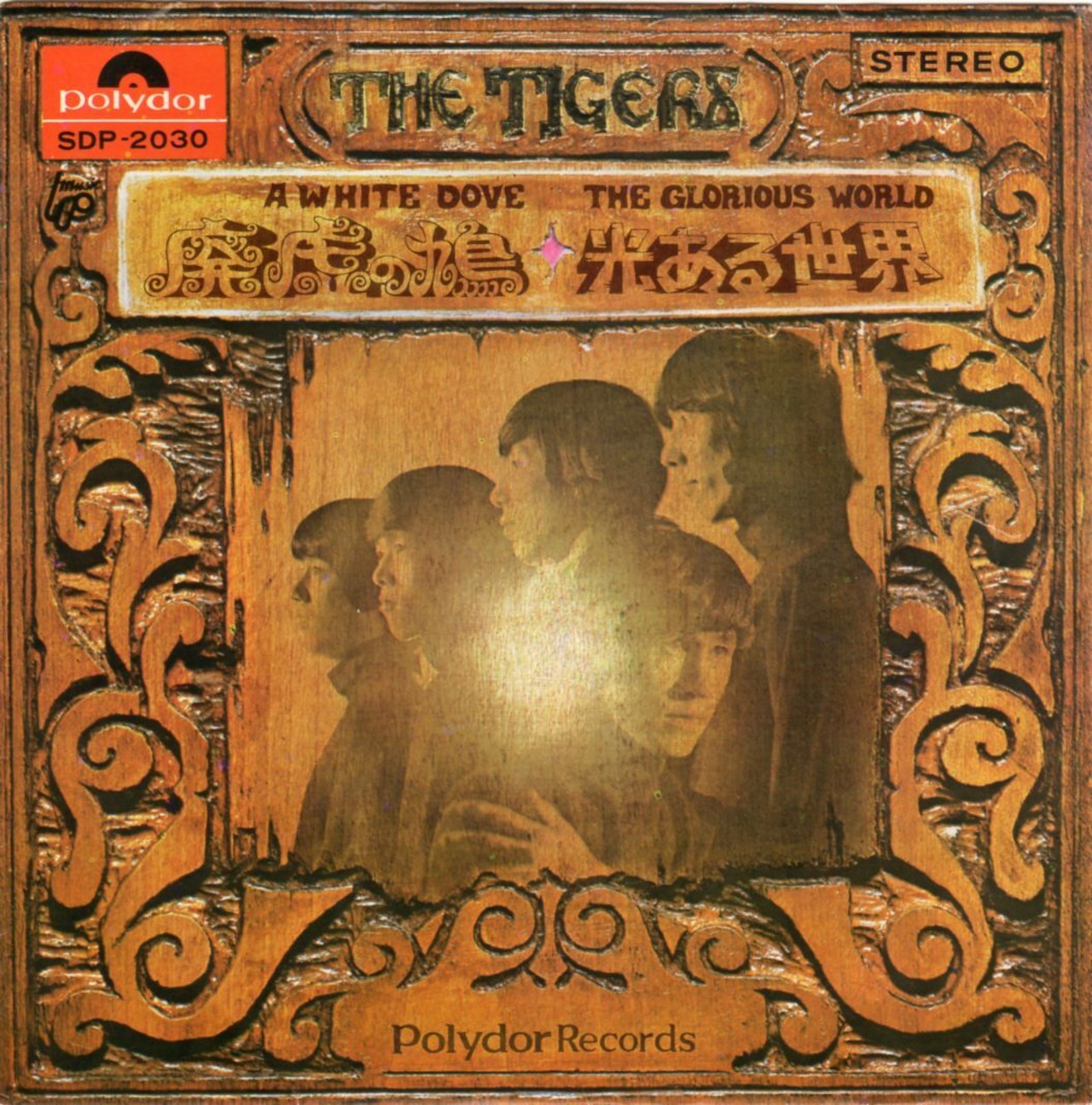 ’68年10月発売。タイガース7枚目のシングル。彼らの3枚目のアルバム「ヒューマン・ルネッサンス」からの先行シングル。出演したTV番組にて "不良の音楽" と一方的に評された事への反発から、旧約聖書を題材に「平和を愛する」というコンセプトの下、ザ・タイガース、ひいてはPOPグループが持つ芸術性を世に問うべく作られた作品。A面「光ある世界」はジュリーのソロでアルバム冒頭を飾るオペラ的ダイナミズムに満ち溢れた楽曲。そしてB面「廃墟の鳩」はトッポこと加橋かつみのソロ。一羽の鳩に未来への希望を見出し、再生への願いを歌いあげてアルバムを締めくくる感動的なナンバー。この曲が収録されたアルバムにて加橋はタイガースを脱退しますが現在でもステージで披露される事の多い彼の代表作ともなっています。