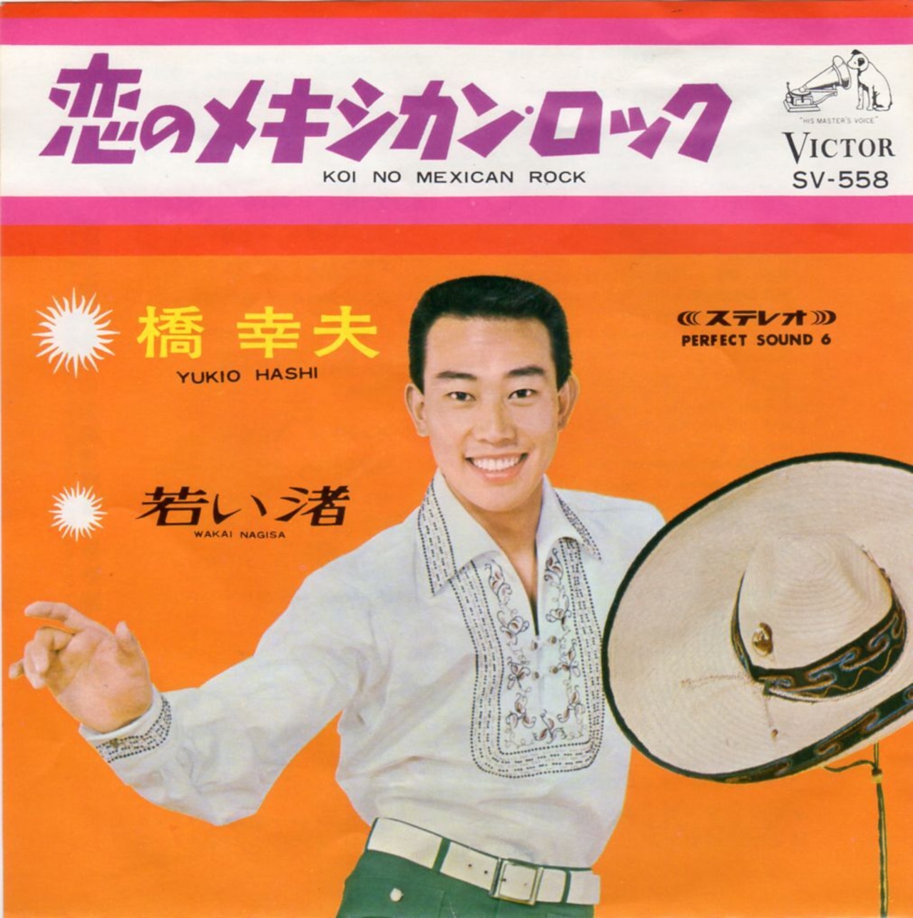 ’67年5月発売。橋主演映画「恋のメキシカンロック 恋と夢と冒険」主題歌。佐伯孝夫作詩・吉田正作編曲。橋幸夫のリズム歌謡物最終作にして最高峰。ジャケット見開きには中川三郎によるニュー・ステップ "メキシカン・ロック" の解説文もあり。B面「若い渚」も佐伯孝夫作詩・吉田正作編曲によるメロウな青春歌謡。