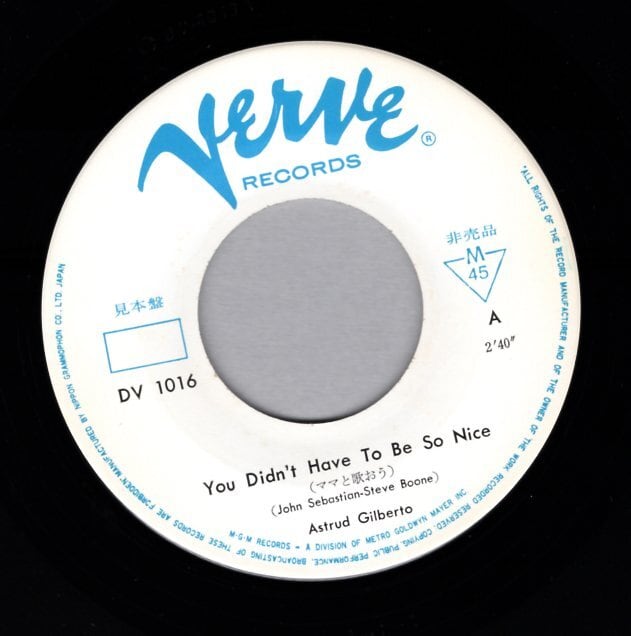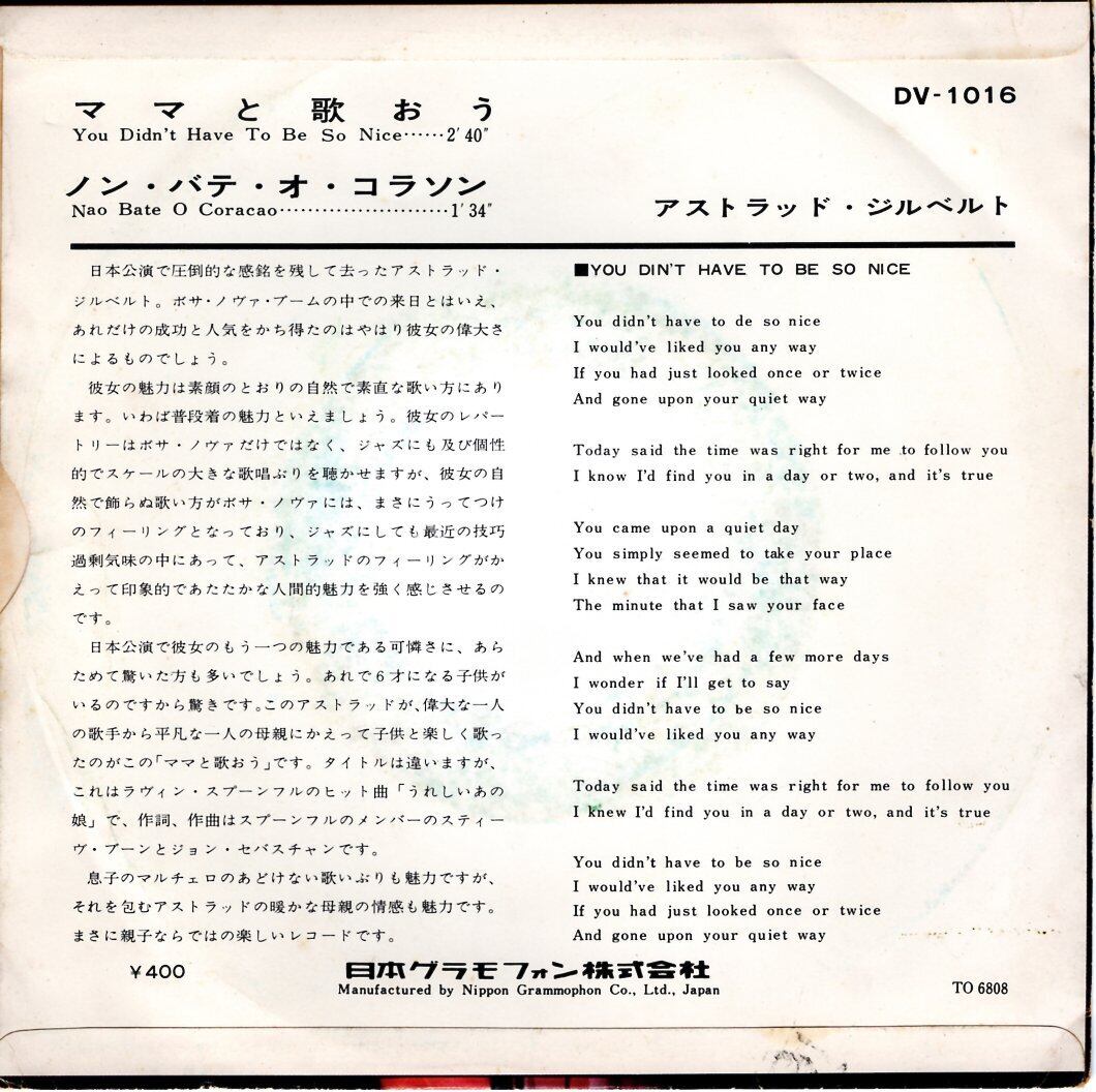 【7″/見本盤白レーベル】アストラッド・ジルベルト ママと歌おう / ノン・バテ・オ・コラソン ASTRUD GIRBERTO - YOU DIDN'T HAVE TO BE SO NICE / NAO BATE O CORACAO
