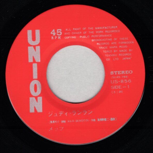 メッツの’76年2月発売2ndシングル。A面はルベッツ3rdアルバムからのカバー。迸るグリッター・ロック歌謡!B面はフレンチ・ポップス・シンガー、ピエール・グロスコラのハピハピPOPS日本語カバー!どちらも捨てがたい良曲。