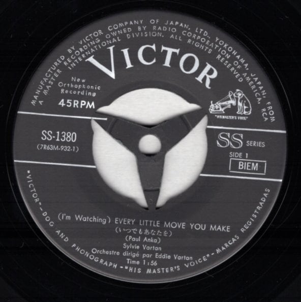 【7″/日本デビュー盤】シルヴィ・バルタン いつでもあなたを… / 悲しき雨音 SYLVIE VARTAN - (I'M WATCHING YOU) EVERY LITTLE MOVE YOU MAKE / RHYTHM OF THE RAIN (En écoutant la pluie)