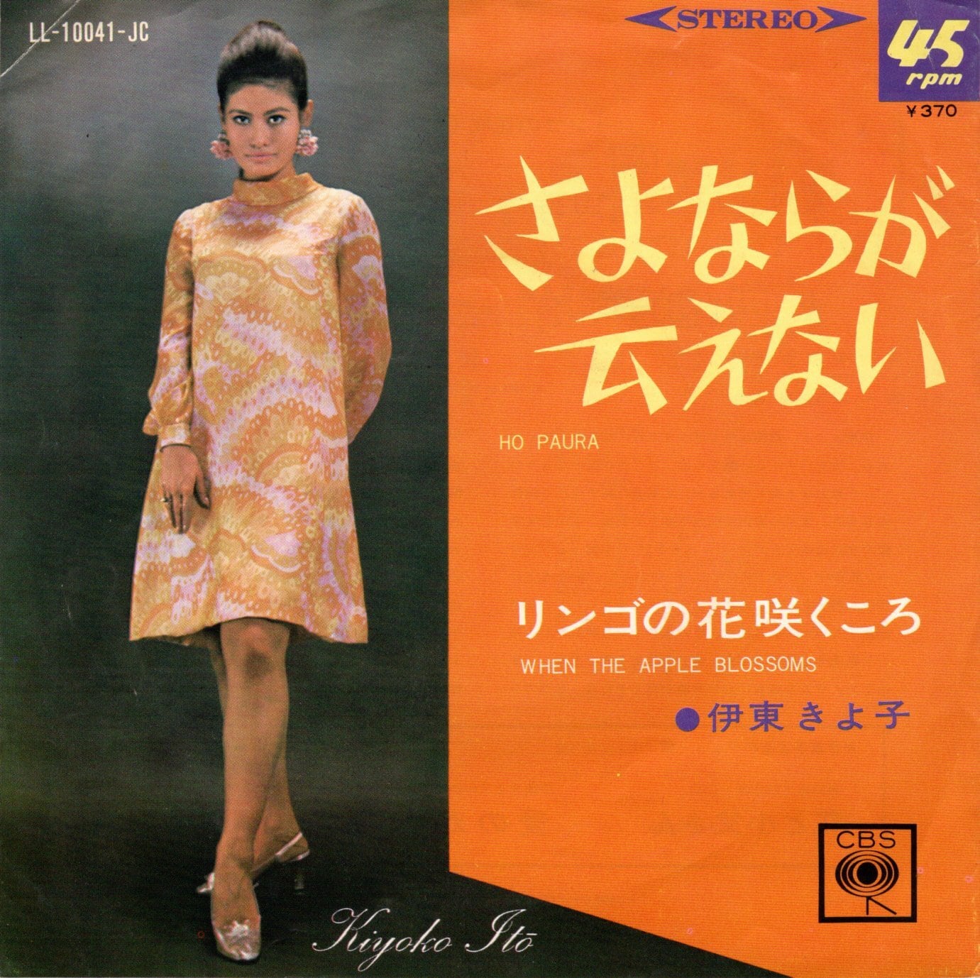 宝塚音楽学校在籍中に東宝インターナショナル・ダンシング・チームに合格するも怪我により退団(同時に音楽学校も中退)。その後フォーク歌手としてアメリカのニュー・クリスティー・ミンストレルズに加入する等、華々しい経歴を持つ伊東きよ子が帰国後、渡辺プロに所属。日本デビュー後の’67年10月にリリースした2ndシングル。A面「リンゴの花咲くころ」は橋本淳・作詞 / すぎやまこういち・作曲 / 森岡賢一郎・編曲の一人GS的作品。B面「さよならが云えない」はイタリアの女性歌手ロベルタ・マッツォーニのカバー(日本語詞を安井かずみが担当)。