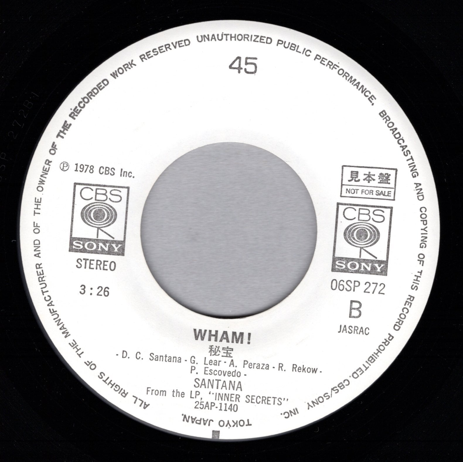 ’78年リリース。A面「ウェル・オール・ライト」は’69年にブラインド・フェイスのカバーによりヒットしたバディ・ホリーのナンバーをサンタナが新たにカバー。B面「秘宝」はラテン・パーカッションのブレイクにより始まるインストゥルメンタル・チューン。ツイン・リードのギター・アンサンブルをご堪能ください!