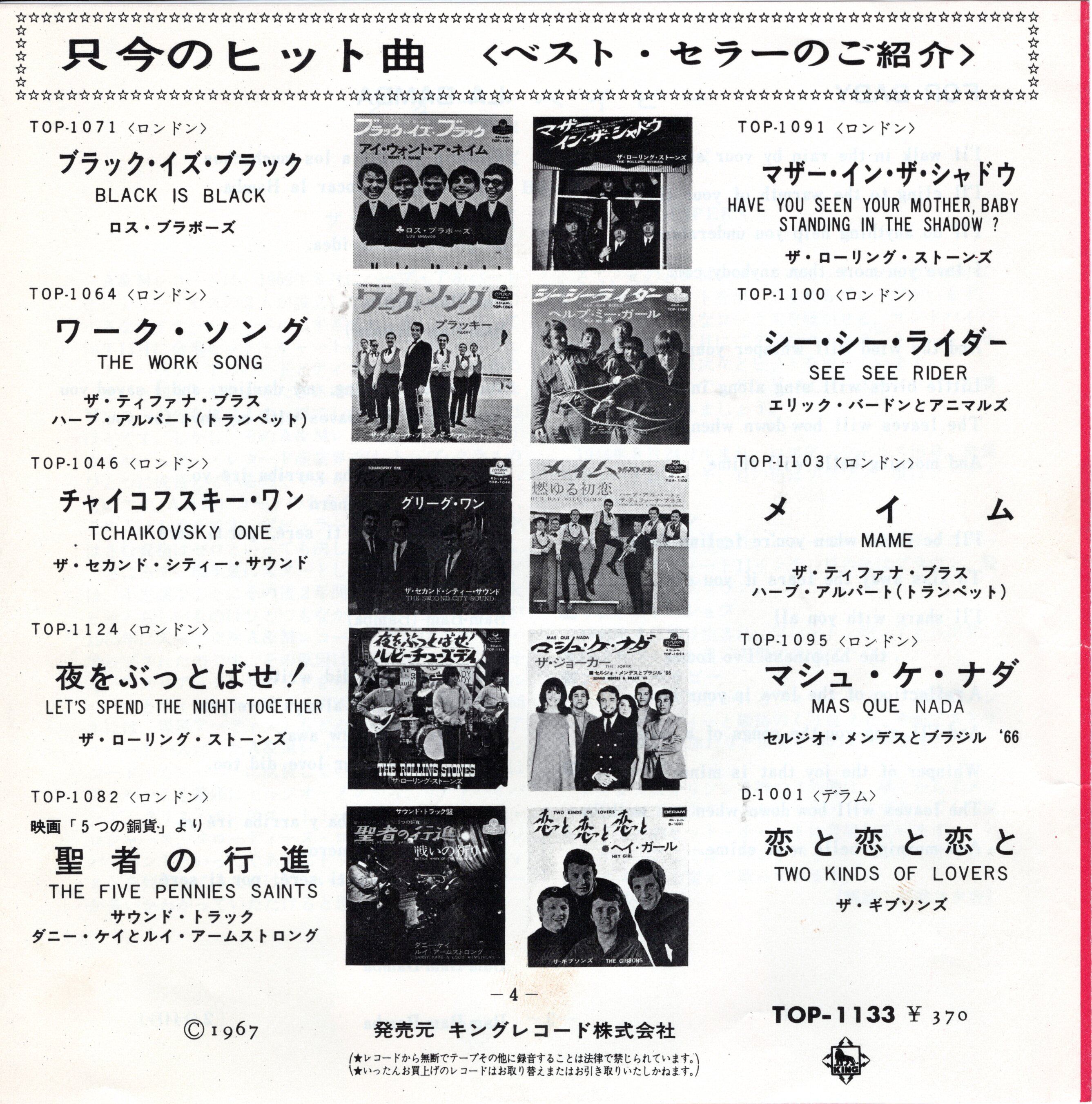 ’67年発売。トミー・リピューマ・プロデュース。A面はジョン・デンバー作品をサンドパイパーズ流にジェントルにアレンジ。B面は更にジェントル増量で牧歌的田園風景すら目に浮かぶ「ラ・バンバ」。あの「ラ・バンバ」やその「ラ・バンバ」とも全く違います。異色!