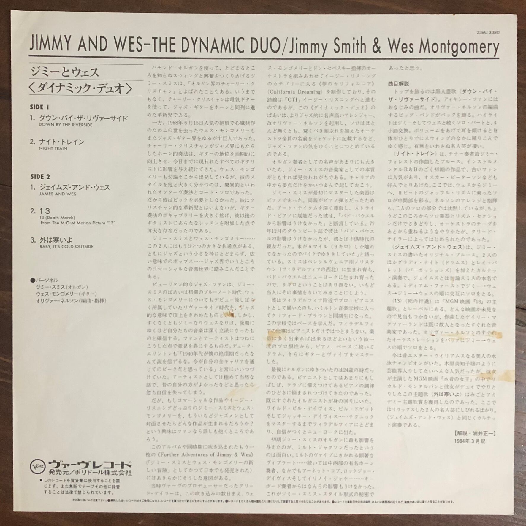 【LP】ジミー・スミス、ウェス・モンゴメリー “ジミーとウェス〈ダイナミック・デュオ〉” Jimmy Smith & Wes Montgomery – Jimmy & Wes - The Dynamic Duo