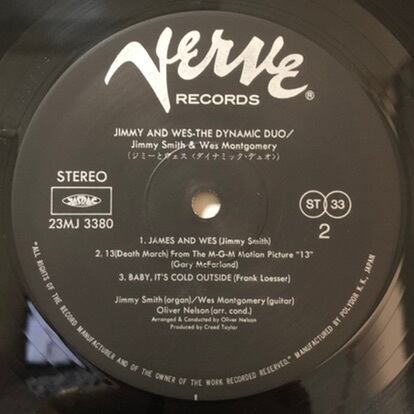 '66年録音。ジャズ・オルガンとジャズ・ギターを代表する2人の共作アルバム。ルイ・アームストロング歌唱で知られるディキシー・ナンバー(A1)にR&Bナンバー(A2)やジミー・スミス・オリジナル(B1)を収録。