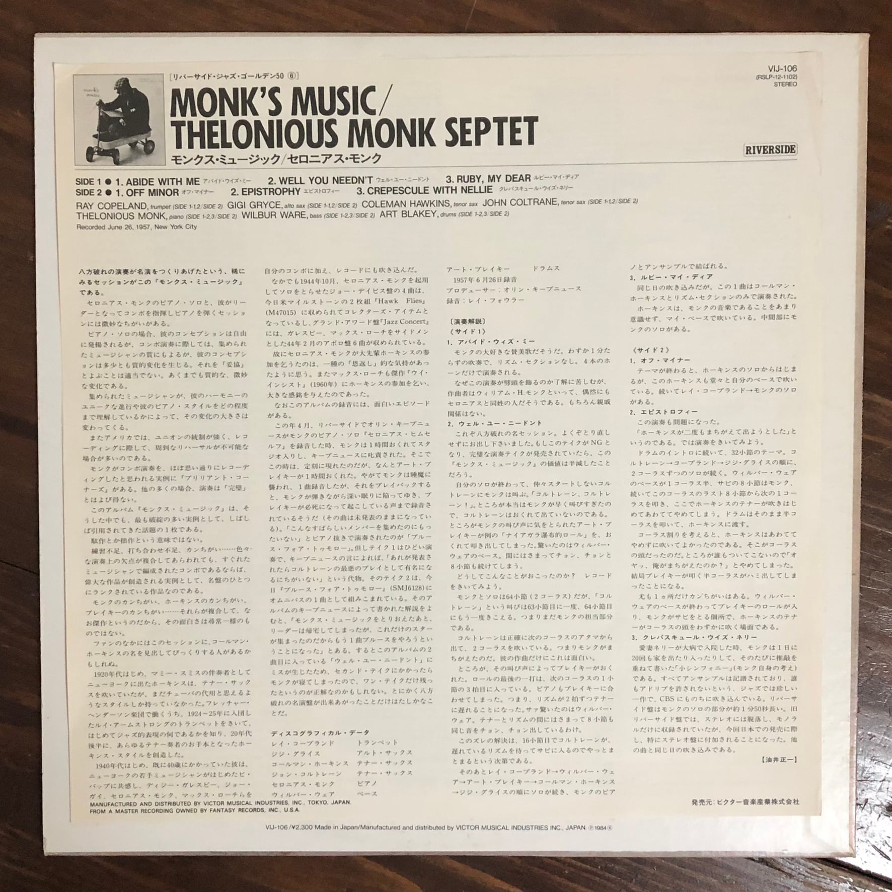 【LP】セロニアス・モンク “モンクス・ミュージック” Riverside Jazz Golden 50 – 6 Thelonious Monk Septet – Monk's Music