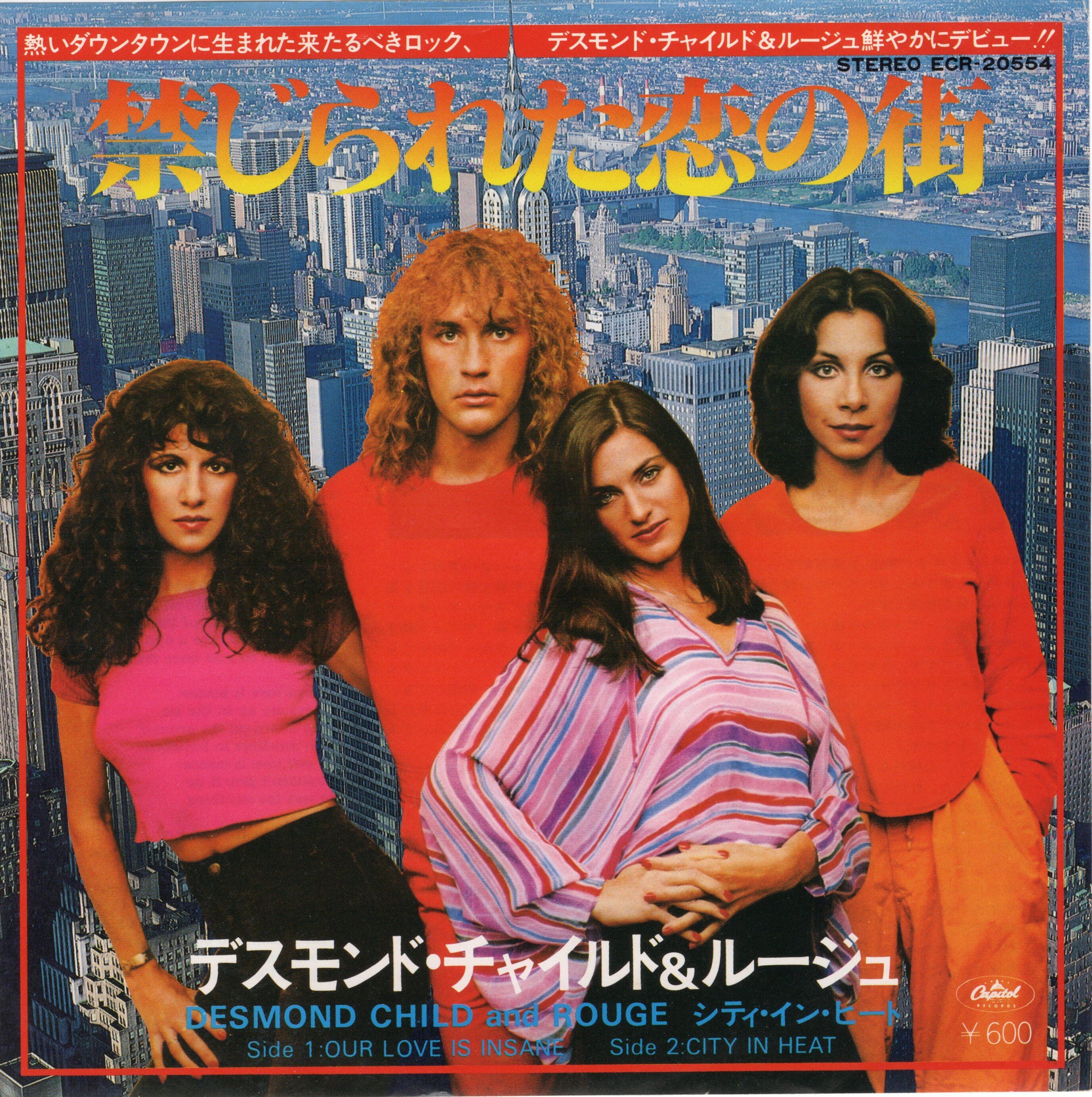 ’78年リリース。のちにボン・ジョヴィ「You Give Love a Bad Name」「Livin' on a Prayer」、エアロスミス「Angel」「Crazy」、KISS「I Was Made For Lovin' You」「Heavin's On Fire」等、世界的ヒット・チューンの作者として知られるソングライター、デズモンド・チャイルドがキャリア初期に女性シンガー3人と結成したディスコ・ポップ・ユニット「デズモンド・チャイルド & ルージュ」のデビュー・シングル日本盤。ラテン・パーカッションや女性コーラスのスキャットを活かしたロッキン・ディスコ「シティ・イン・ヒート」収録(B面)