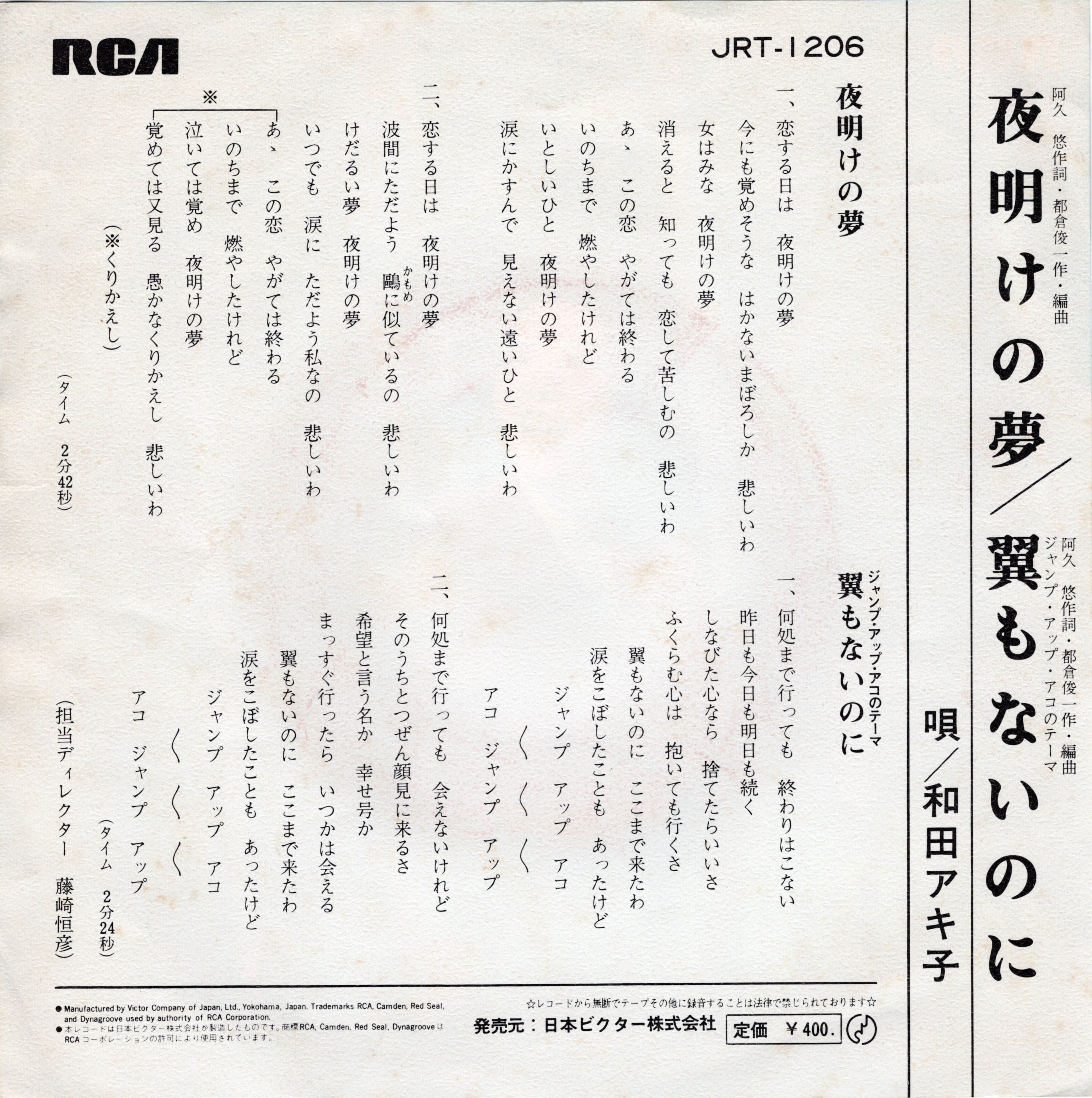 【7″】和田アキ子 夜明けの夢 / ジャンプ・アップ・アコのテーマ 翼もないのに