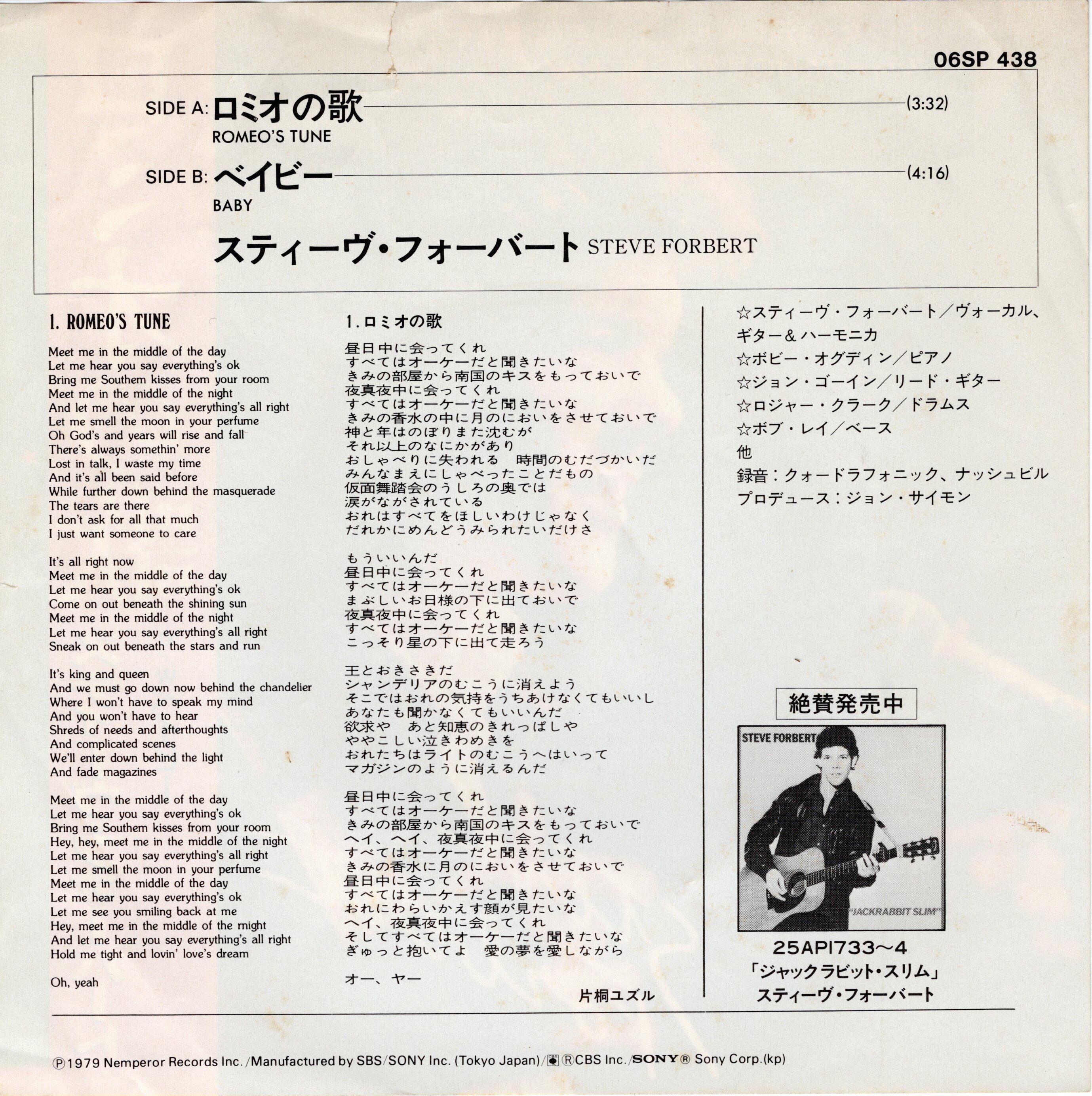 【7″】スティーヴ・フォーバート ロミオの歌 / ベイビー Steve Forbert – Romeo's Tune / Baby
