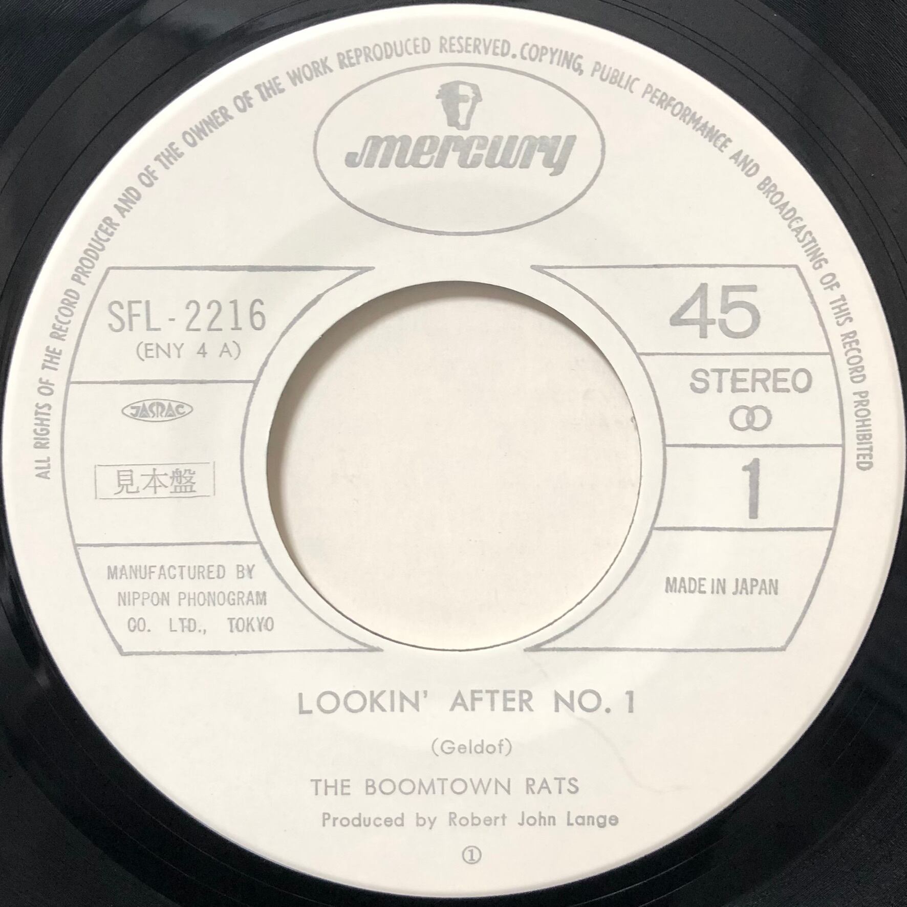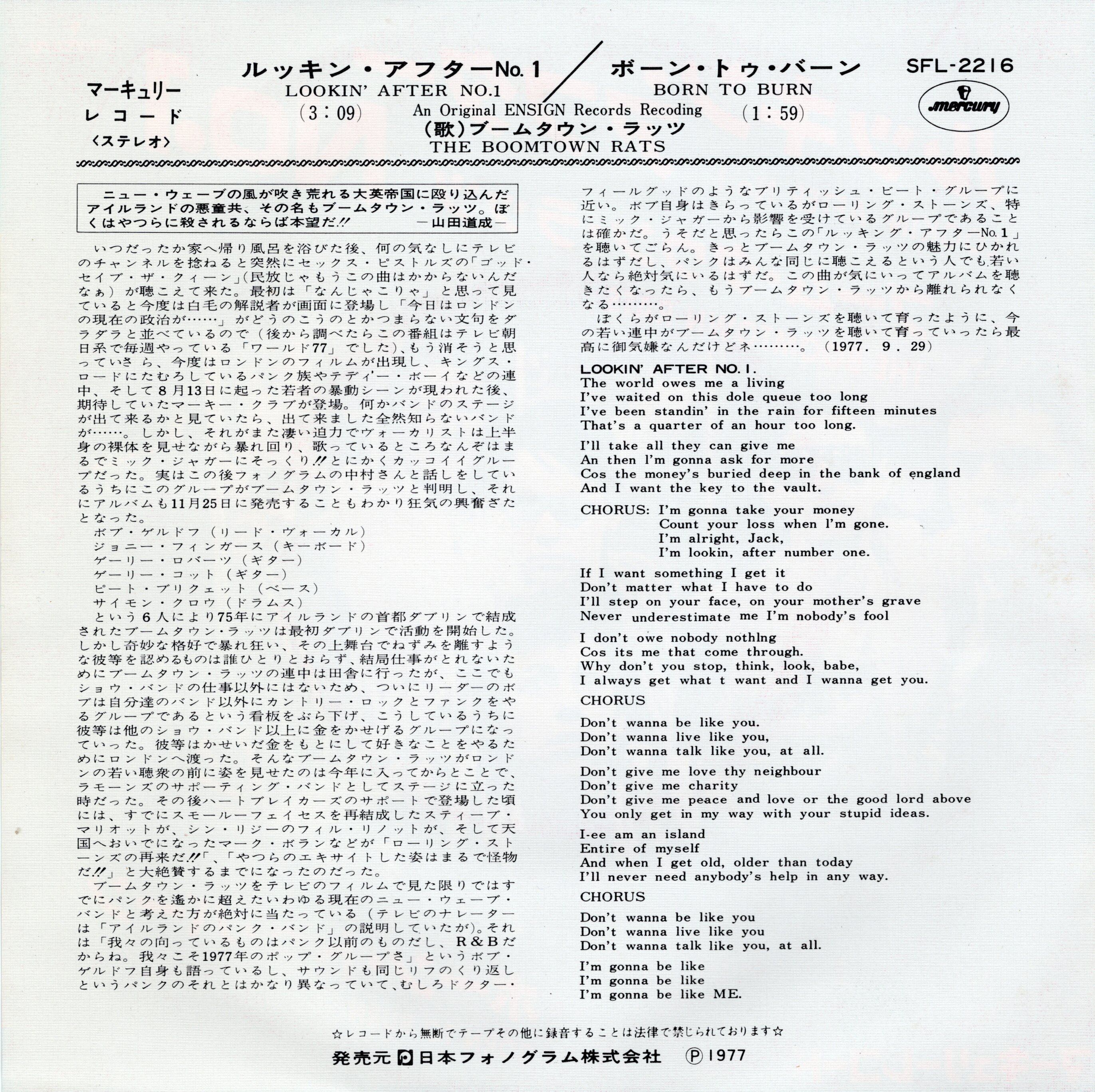 【7″/見本盤】ブーム・タウン・ラッツ ルッキン・アフター・No.1 / ボーン・トゥ・バーン THE BOOMTOWN RATS - LOOKIN' AFTER No.1/ BORN TO BURN