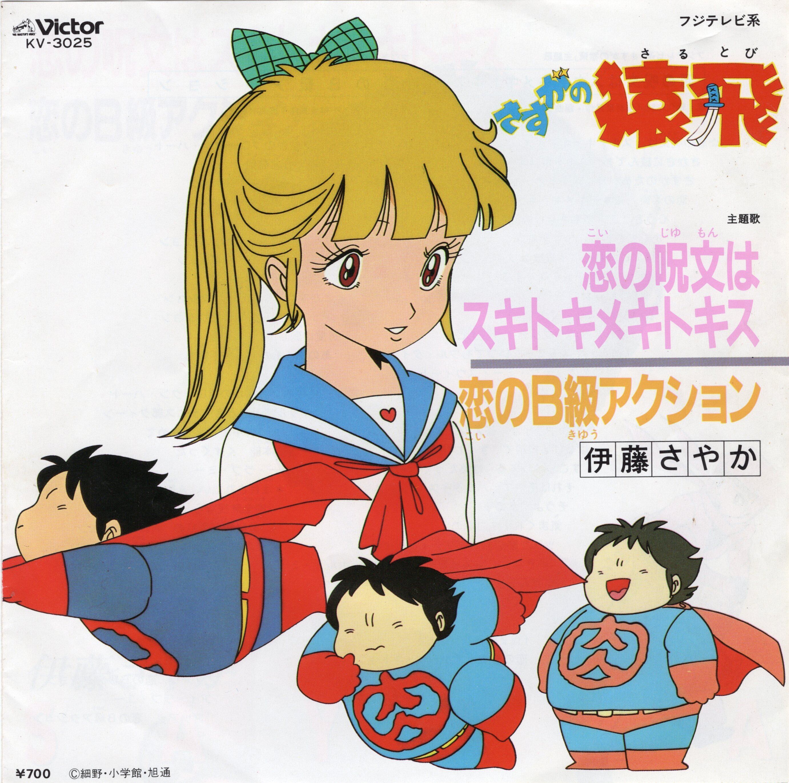 アニメ「さすがの猿飛」主題歌。爽快テクノポップ「恋のB級アクション」をカップリングした人気盤。再入荷。