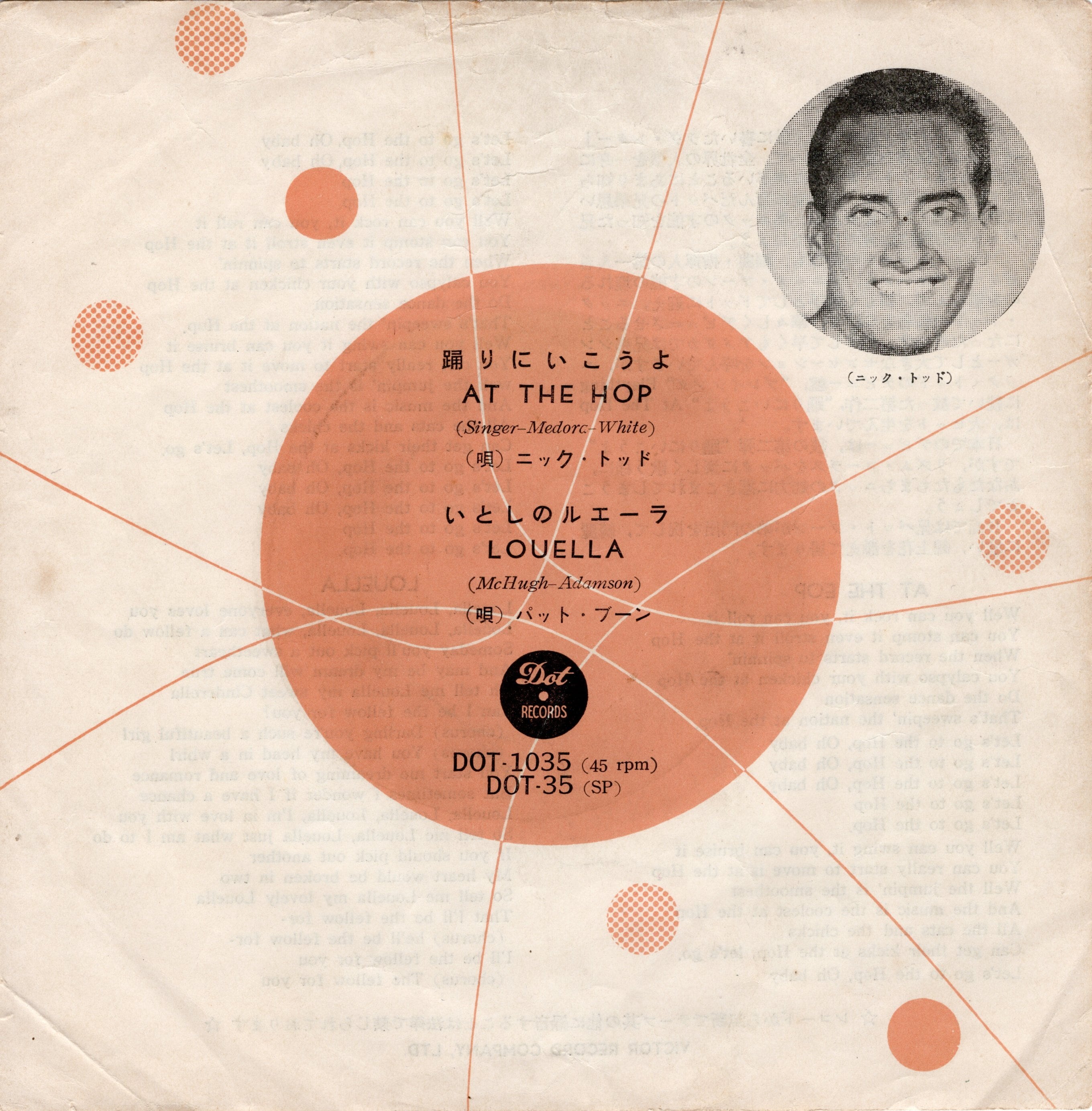 パット・ブーンの弟ニック・トッドのドゥーワップR&R「踊りにいこうよ」にパットの「いとしのルエーラ」をカップリングした兄弟スプリット。