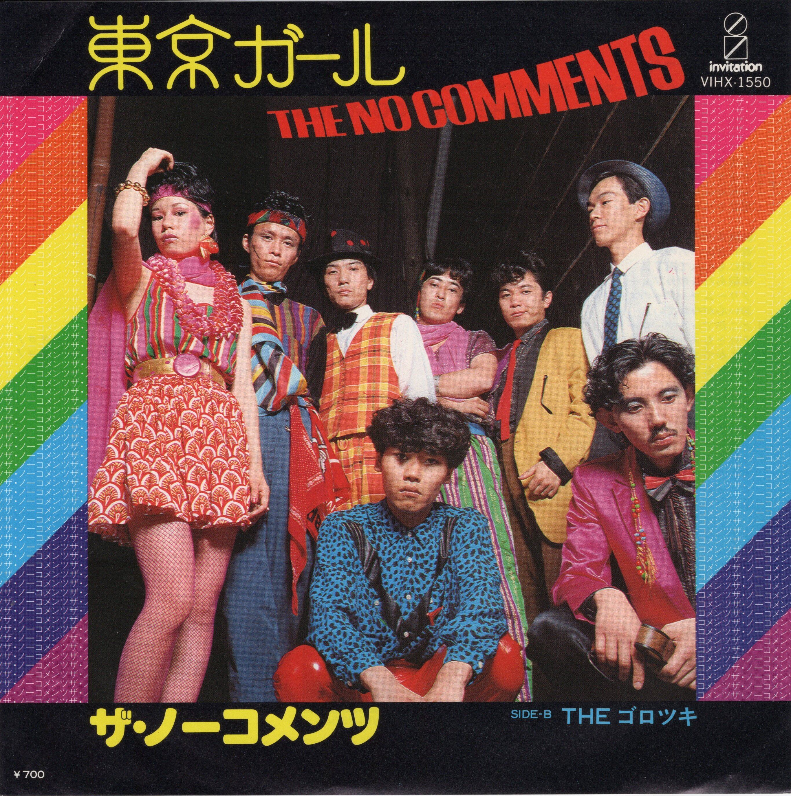 スカ~ラテン~ファンクと様々な音楽性を持った京都のパンク~ニュー・ウェーヴ集団 “ノーコメンツ” の’81年発表シングル見本盤。のちにゴーバンズにもカバーされたスカ・ビート「東京ガール」にファンカラティーナ・ナンバー「THE ゴロツキ」をカップリング。大村憲司プロデュース。