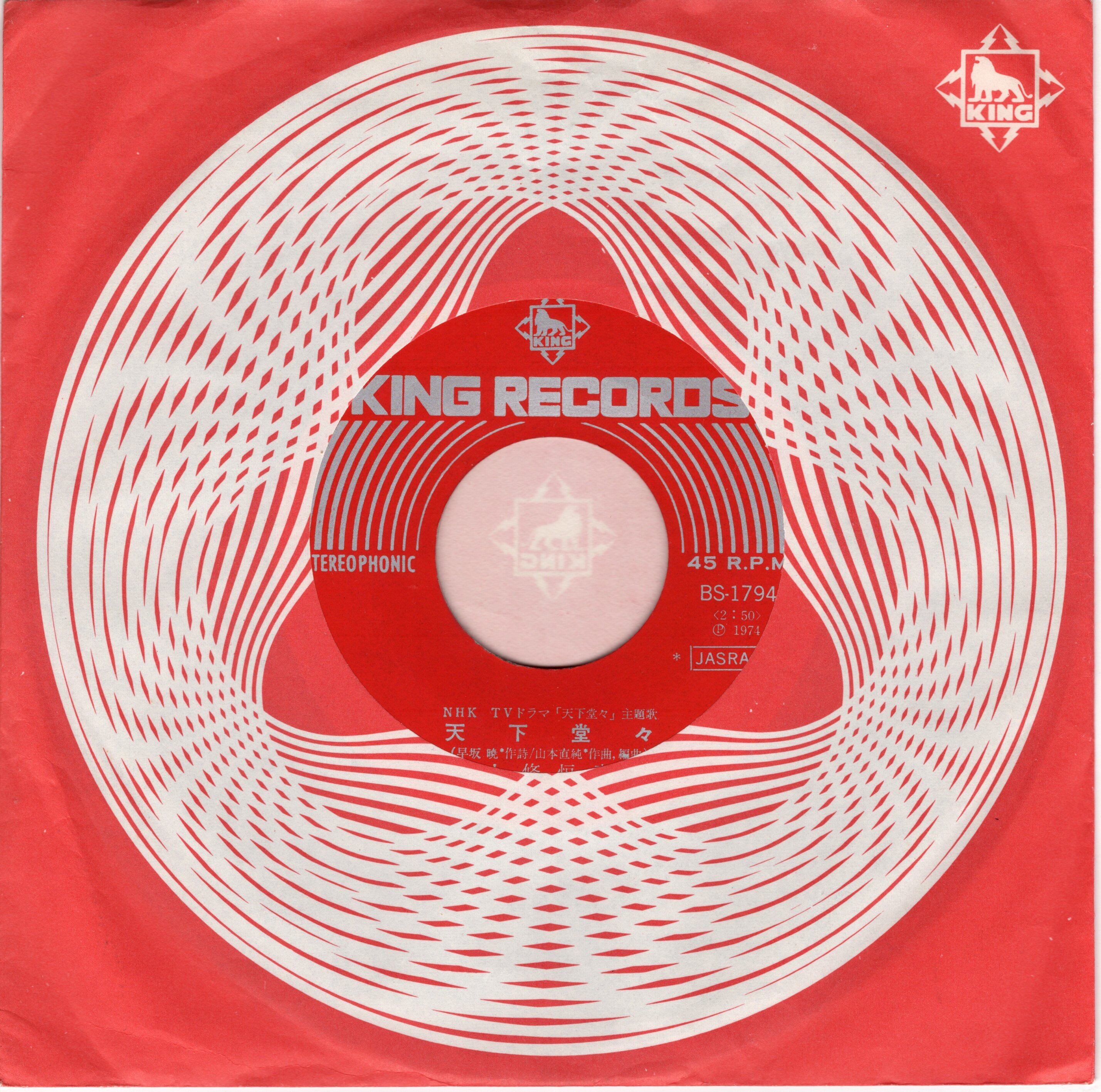 「マグマ大使」主題歌や森永チョコレートCMソング等、豪快な作風で知られる昭和の名作曲家・山本直純が作編曲を手掛けた和太鼓ブレイクビーツ「天下堂々」に前田憲男:編曲のソフト・ロック歌謡「さよならの世界」(第四回世界歌謡祭 歌唱グランプリ受賞作)をカップリング。豪放磊落(A面)&気宇壮大(B面)。’74年リリース!