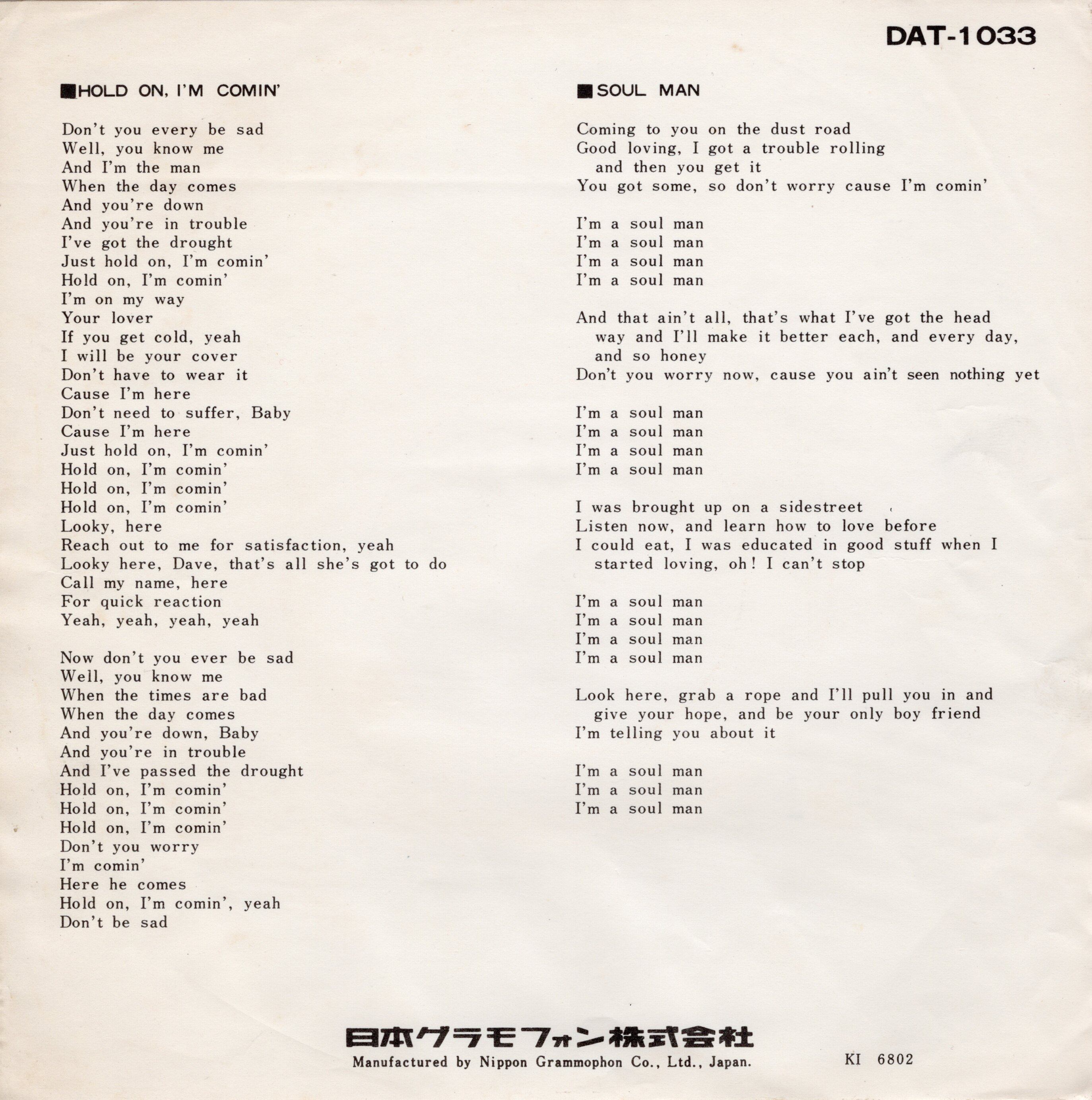 ’68年発売。サム&デイヴの代表作2曲を収めたR&B決定盤。