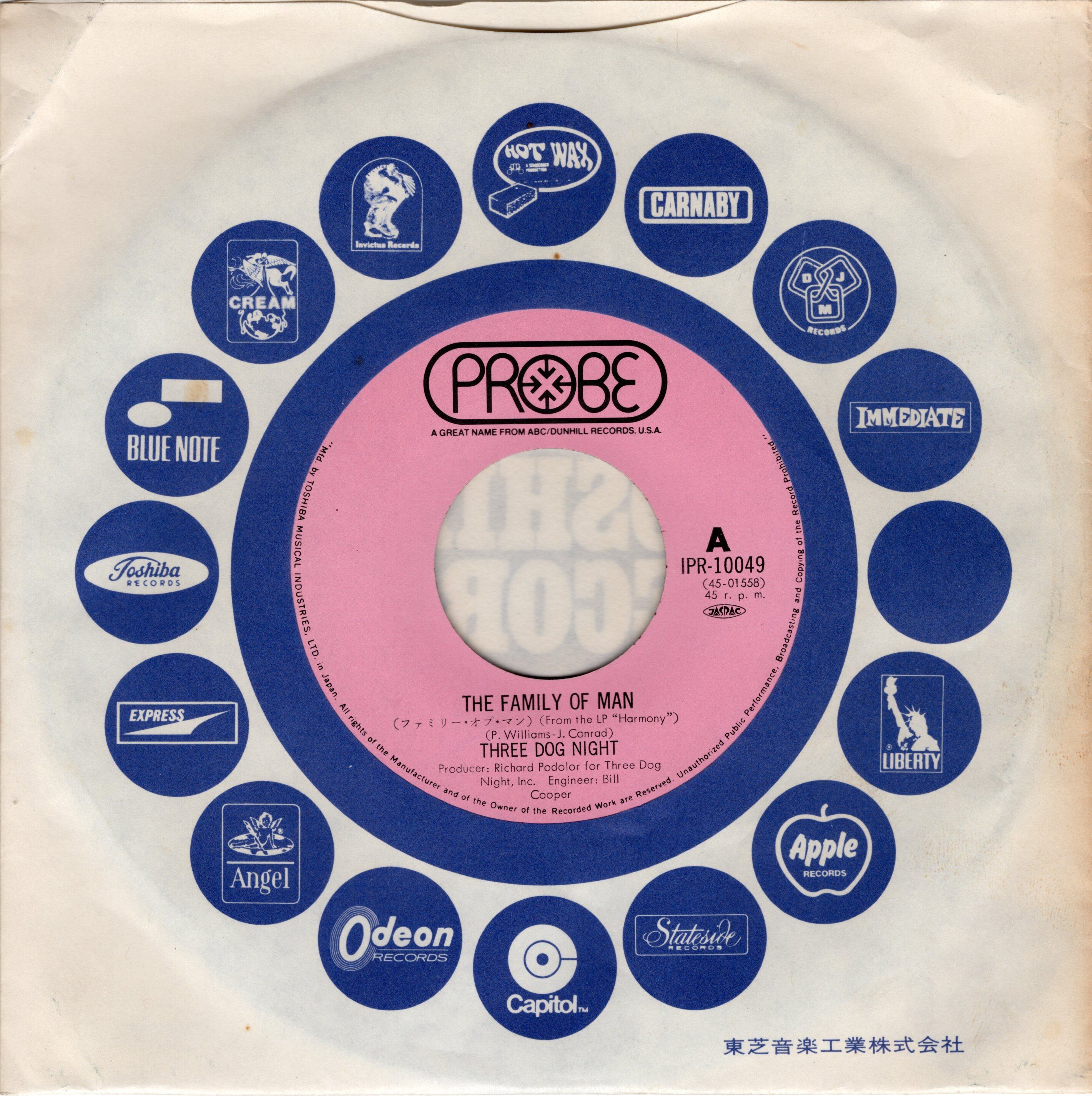 【7″】スリー・ドッグ・ナイト ファミリー・オブ・マン / 男と女のすべて(コロムビア映画「男と女のすべて」サウンド・トラック) THREE DOG NIGHT - THE FAMILY OF MAN / GOING IN CIRCLES (From the Columbia Picture "X,Y and Zee")