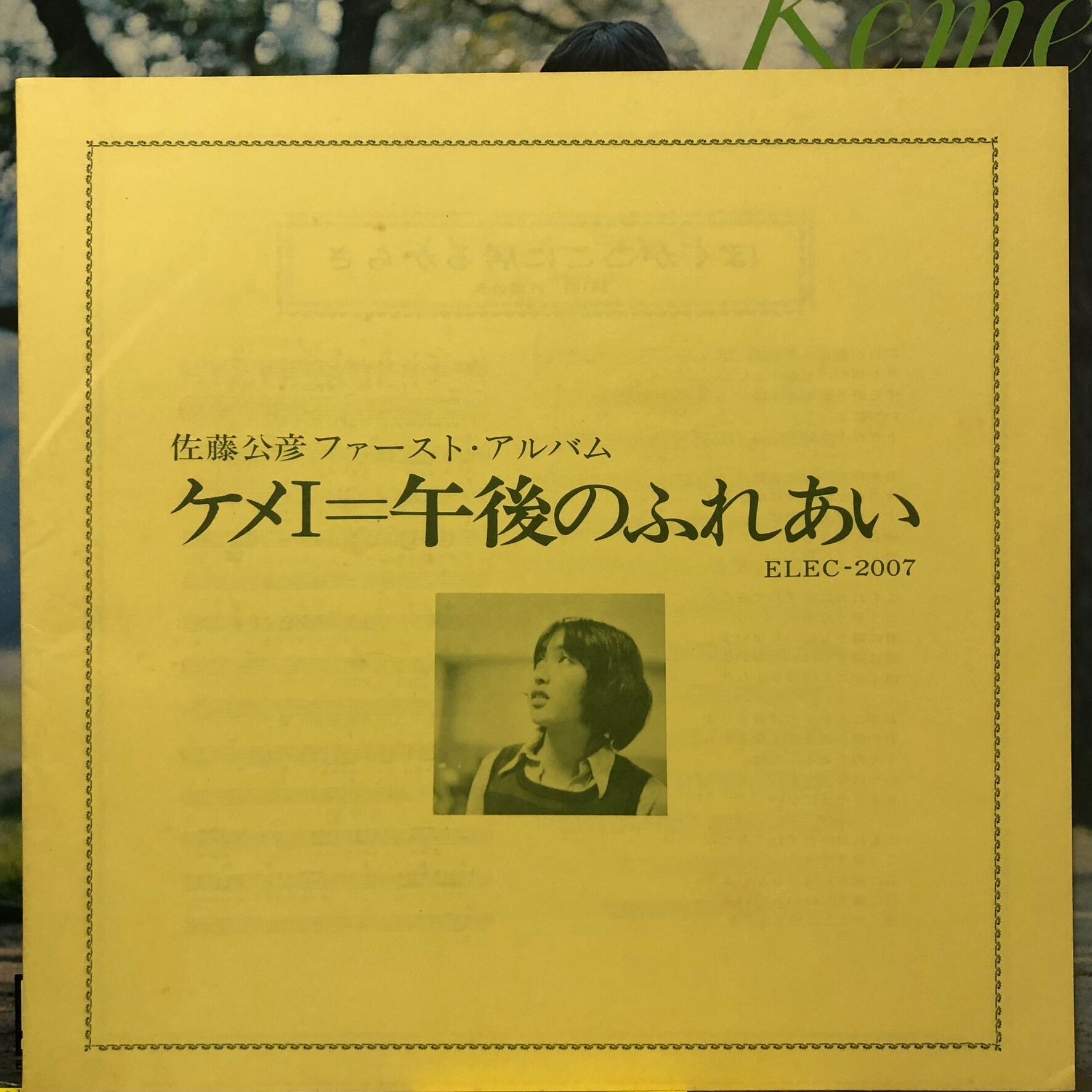 ’72年発売。ケメこと佐藤公彦ファースト・アルバム。ソフト・ロック・アレンジなA1.、A5.、B6.等。フォークの枠に収まらない魅力に溢れた一枚。
